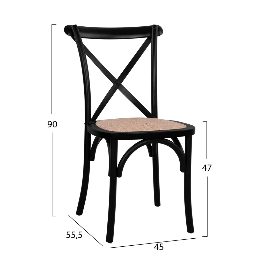 Никога не подценявайте стойността на вечния дом, освежете трапезарията си с винтидж настроение, на което всеки ще завиди и уникален резултат, който да покажете. Изберете стол, който може да е бил изгубен с времето, но най-накрая е върнат към живота. Столът е изработен от високоздрава букова дървесина в черен матов нюанс, а седалката на стола е от ръчно тъкан ратан. Също така е фабрично монтиран и е подходящ за оборудване на бизнес помещения. Размери: 45х55,5х90см. Височина на седалката: 47 см. Размери на седалката: 45х41,5см. Столът е изработен от масивна букова дървесина и се подрежда ФАБРИЧНО СГЛОБЕН