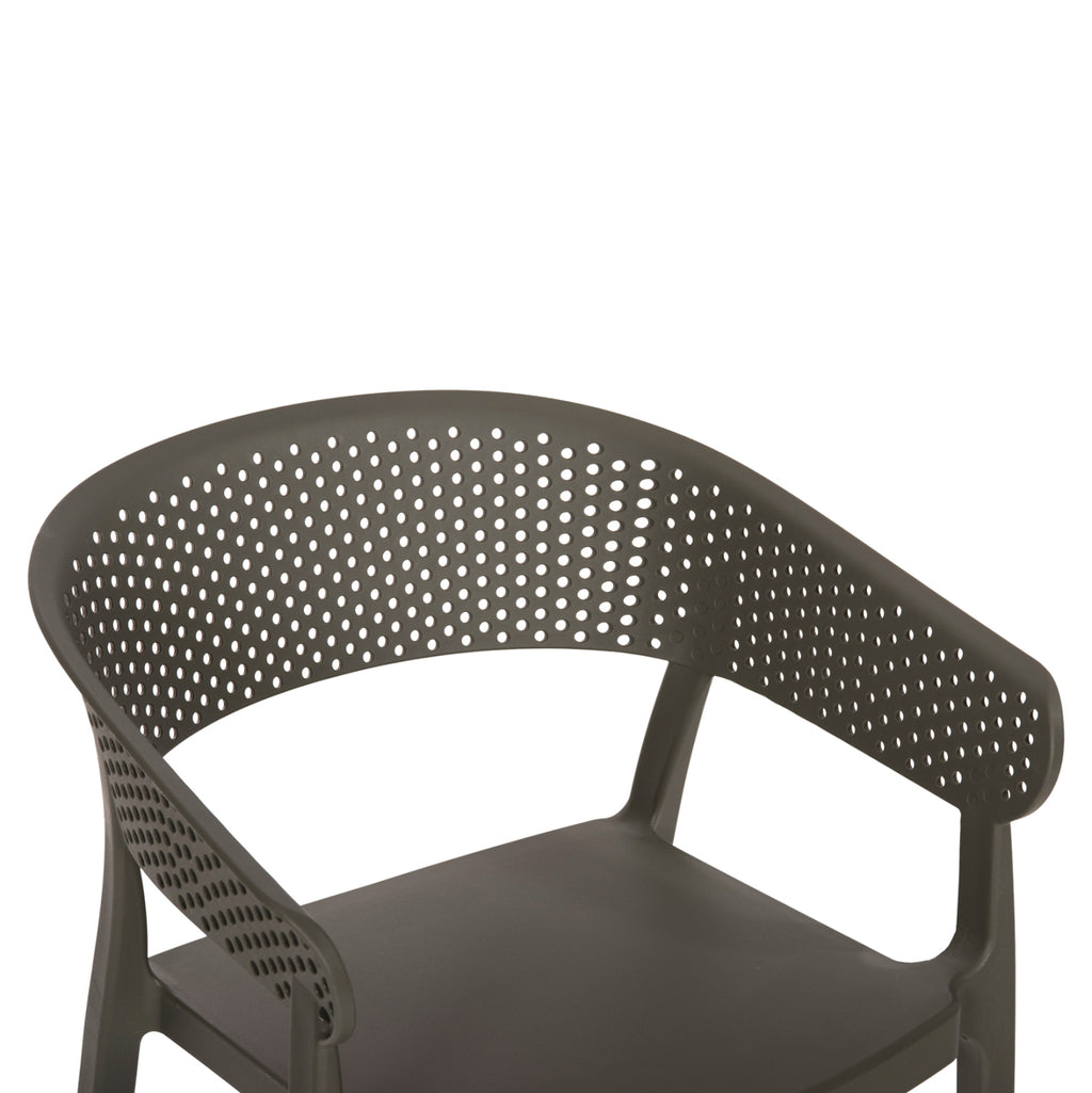 Полипропиленово кресло в цвят ТЪМНА МАСЛИНА. Идеално предложение за използване във външни пространства, независимо дали професионални (банкетни зали, кетъринг компании и др.) или за дома. Фотьойлът се състои от гладка седалка и полукръгла, независима и "перфорирана" облегалка и подлакътници. Той е красив и ще обнови естетически всяко външно пространство. ТЕХНИЧЕСКА ХАРАКТЕРИСТИКА: Общи размери: 53.5x50.5x73H cm. Височина на седалката: 45 см. МАТЕРИАЛ НА ИЗРАБОТКА: Столът е изработен от 100% висококачествен полипропилен. Полипропиленът е особено устойчив на тегло и вода, като същевременно има голяма устойчивост на температури до 125 градуса по Целзий. Освен това неговата издръжливост не се ограничава до тегло, вода и температура, но е необичайно устойчив на много химически разтворители, киселини и основи. ПОДДРЪЖКА: Полипропиленовите столове се почистват лесно с влажна кърпа. Ако са на открито, могат да се почистват директно с течаща вода. ПРЕДИМСТВА: Полипропиленовият стол има само предимства и е чудесен избор за външни бизнес пространства. По-специално, неговият сравнително удобен размер, както и неговата издръжливост, го правят най-добрият избор за банкетни зали или за кетъринг фирми, или за всяко открито пространство, благодарение на изключителната му лекота за подреждане на големи количества. Но най-важното нещо за полипропилена е, че той е екологичен, защото може да се рециклира.