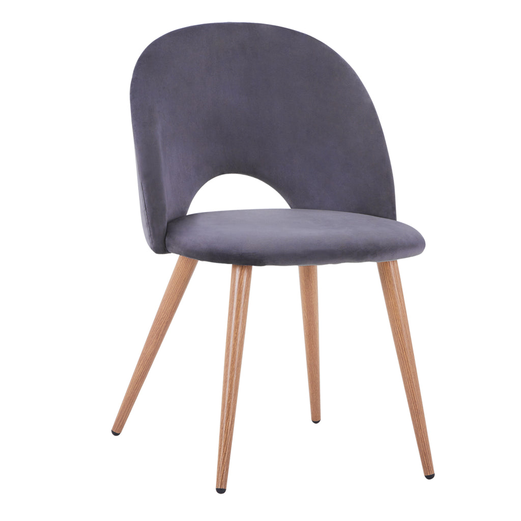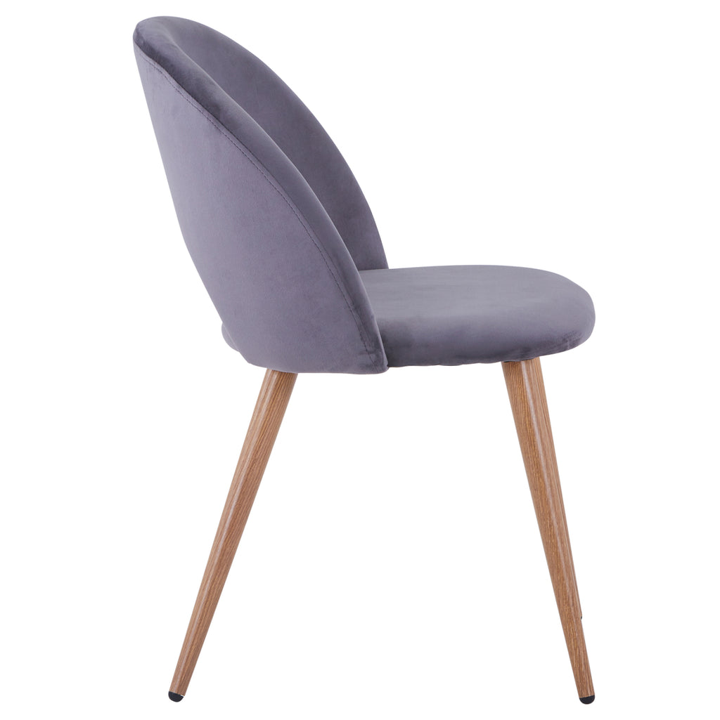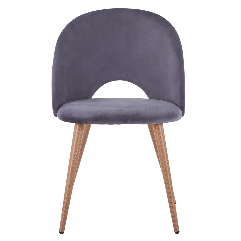 SADIE стол, тапициран в сиво кадифе. Краката са метални, боядисани, за да придадат вид на дърво. Нотка елегантност, съчетана с безброй цветови вариации и форми. Леко лъскавата материя с нейния неповторим вид и усещане не без причина е една от живите тенденции par excellence. Плюшеното покритие прави всичко различно! Размери: 52x49.5x77H см. Височина на седалката 44 см
