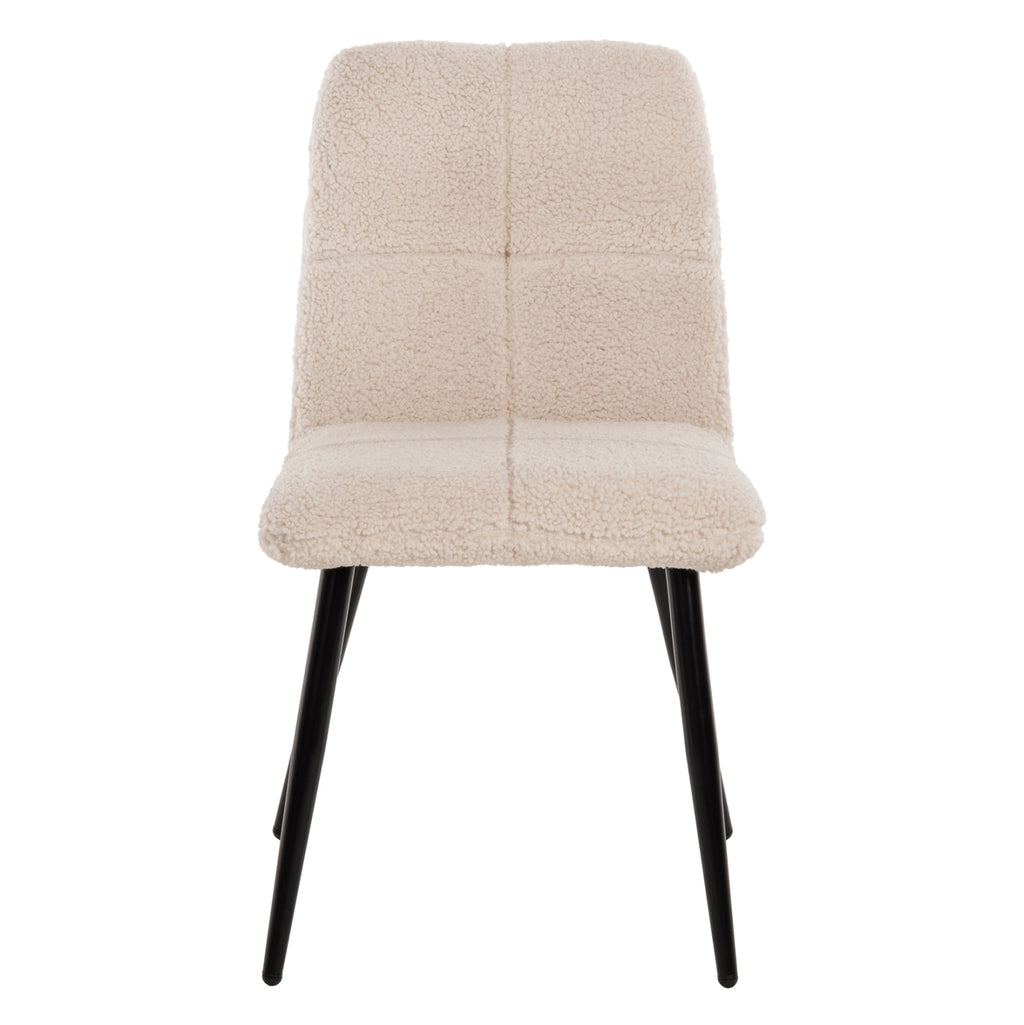 Столът SHELLY е модерен, удобен и стабилен! Доминиращият цвят е БЯЛО, а 4-те крака са черни. Тапицерията на стола е изработена със специална дамаска ТЕДИ, която ще придаде различен вид на вашето пространство. Това е просто предложение, особено за вашата трапезария, но също така ще пасне почти навсякъде! РАЗМЕРИ: 48x64x87H см. Размери на седалката: 43х48 см. Размери на гърба: 45х44см. Височина на седалката: 49 см. Разстояние на крака: 40x45 см. МАТЕРИАЛИ НА КОНСТРУКЦИЯТА: Краката на стола са метални, а в долната част на краката има пластмасови капачки за защита на пода, както и за защита на самите крака от влага. Подплатата е изработена от висококачествена материя ТЕДИ. Платът Теди често се прави от различни тъкани. В наши дни преобладава синтетичното теди, т.е. изработено от полиестер в комбинация с акрил. И след това се боядисва в желания цвят. Тази материя може да се опише като мека, пухкава, еластична и има вид на овца. Освен това е издръжлив, топъл и може да абсорбира влагата. ПОДДРЪЖКА: В повечето случаи платът на Теди може просто да се почисти с прахосмукачка. ПРЕДИМСТВА: •Здрава конструкция •Модерен дизайн •Отличителна визия с материята Теди •Невероятно съотношение цена/качество •Лесно сглобяване с инструкции *Продуктът се доставя във фабрична опаковка несглобен