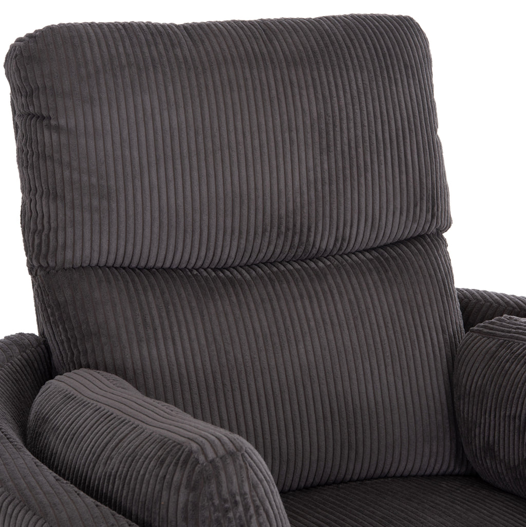 Стол за кърмене и релакс VELMORA в сиво кадифе Столът VELMORA е проектиран да предложи абсолютен комфорт на майката и усещане за спокойствие на бебето. Тапицерията от сив кадифен плат (с раирана текстура) създава топло и уютно изживяване, идеално за дълги сесии на кърмене и моменти на почивка. Функцията за люлеене помага за отпускане на бебето, докато въртенето на 360 градуса позволява на майката да има незабавен достъп до всичко, от което се нуждае, без да става. В същото време функцията за релакс позволява на облегалката да се наклони назад, а поставката за крака да се разтегне, предлагайки истински моменти на почивка, дори без бебето в ръцете ѝ. ______________________________________ Характеристики на продукта • Стол за кърмене и релакс • Тапициран със сив кадифен плат с раирана текстура • Функция за люлеене за нежно и релаксиращо движение • Въртене на 360° • Функция за релакс с накланяне на облегалката • Вградена поставка за крака, която се разтяга ______________________________________ Размери • 100x90x100В см. Размери на седалката 50x55 см. Размери на облегалката 60x65 см. Височина на седалката: 45 см. Височина на подлакътниците: 65 см. Максимален размер за накланяне: 50x160 см. __________________________________________ Поддръжка • Почиствайте с мека кърпа или прахосмукачка със специален аксесоар за тъкани • Избягвайте енергично търкане и силни химически почистващи препарати • В случай на петна, незабавно почистете с мек почистващ препарат за тъкани __________________________________________ Предимства • Идеален за кърмене благодарение на люлеещия се и ергономичен дизайн • Успокоява бебето чрез нежно движение • Абсолютен комфорт за майката с функция за релакс и поставка за крачета • Завъртане на 360° за лесно движение без напрежение • Топла, мека текстура, която предлага усещане за топлина • Подходящ за ежедневна релаксация извън кърменето ==