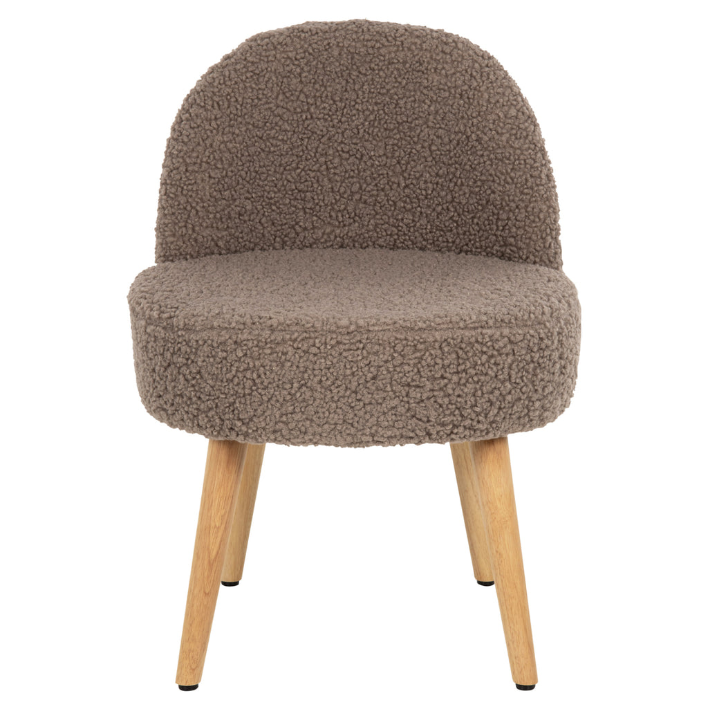 YASMINE Табуретка с много ниска облегалка, тапицирана с топла дамаска букле в светло КАФЯВ нюанс, с дървени крака в естествен нюанс. Нотка елегантност, съчетана с безброй цветови вариации и форми. Табуретката може да се комбинира с различни други мебели като допълнение, което ще завърши декорацията на вашето пространство. РАЗМЕРИ: 47x46x64.5H см. Височина на седалката: 40см. Размери на седалката: 47х39 см. Размер на гърба: 41х27см. Разстояние между краката: 33х33 см. МАТЕРИАЛ НА ИЗРАБОТКА: Табуретката е покрита с отлична материя от букле. Всяка тъкан, която има извиване на възел, се нарича букле. Изработено е от почти всички суровини (въпреки че обикновено е синтетично) със специални възли или силно усукани конци, така че да има къдрава повърхност. Не се мачка и може да бъде изчистена, меланжирана, карирана или туид. ПОДДРЪЖКА: Платът от букле можете да избършете с прахосмукачка, а при петна използвайте леко влажна кърпа. **Табуретката се доставя разглобена във фабрична опаковка
