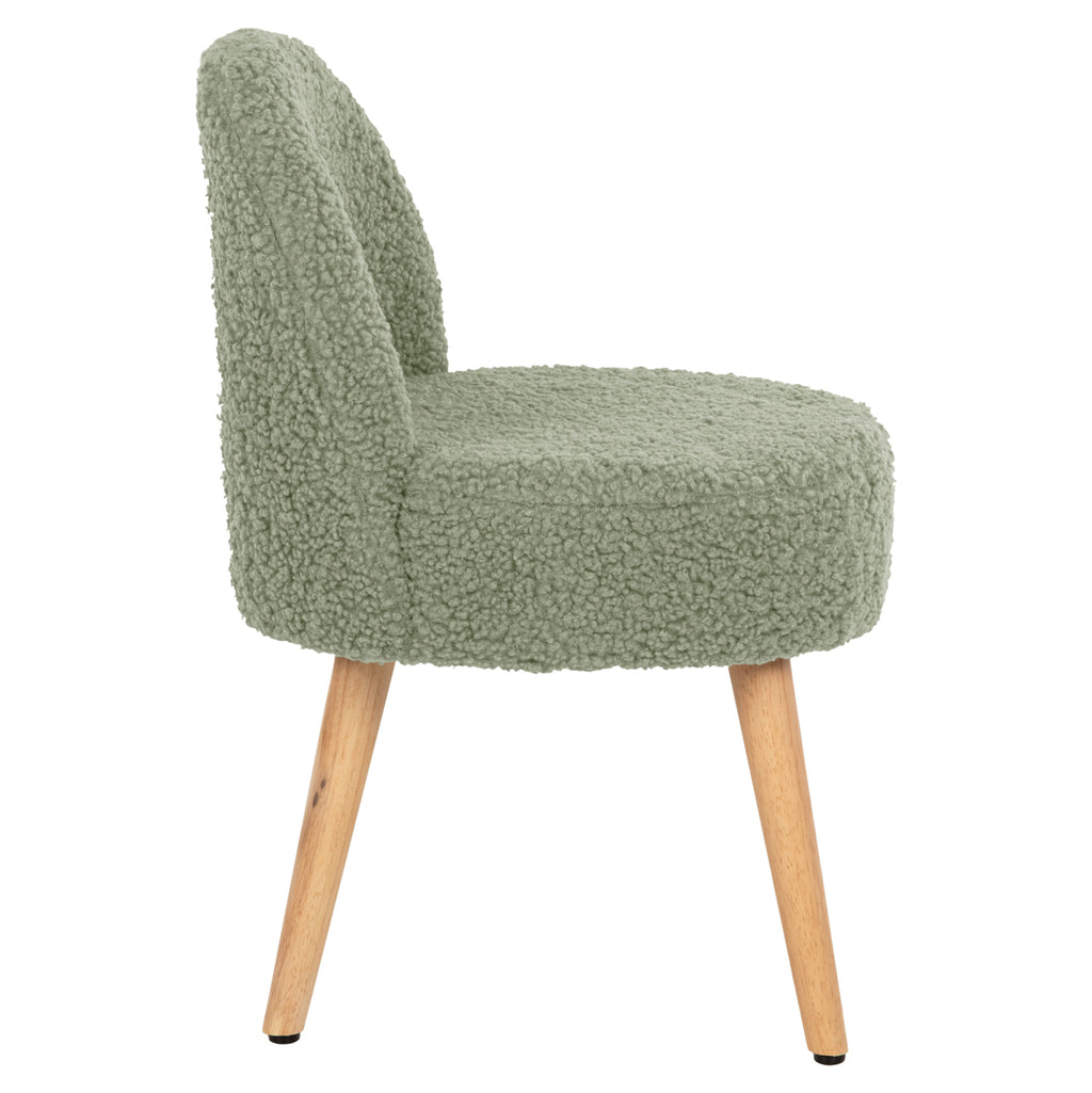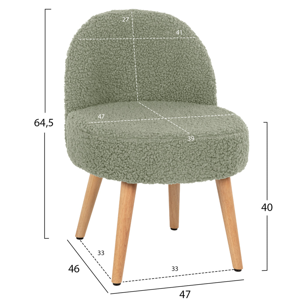 Табуретка с много ниска облегалка YASMINE тапицирана с топла дамаска букле в нюанс ФЪСТЪК, с дървени крака в естествен нюанс. Нотка елегантност, съчетана с безброй цветови вариации и форми. Табуретката може да се комбинира с различни други мебели като допълнение, което ще завърши декорацията на вашето пространство. РАЗМЕРИ: 47x46x64.5H см. Височина на седалката: 40см. Размери на седалката: 47х39 см. Размер на гърба: 41х27см. Разстояние между краката: 33х33 см. МАТЕРИАЛ НА ИЗРАБОТКА: Табуретката е покрита с отлична материя от букле. Всяка тъкан, която има извиване на възел, се нарича букле. Изработено е от почти всички суровини (въпреки че обикновено е синтетично) със специални възли или силно усукани конци, така че да има къдрава повърхност. Не се мачка и може да бъде едноцветна, меланжирана, карирана или туид. ПОДДРЪЖКА: Платът от букле можете да избършете с прахосмукачка, а при петна използвайте леко влажна кърпа. **Табуретката се доставя разглобена във фабрична опаковка