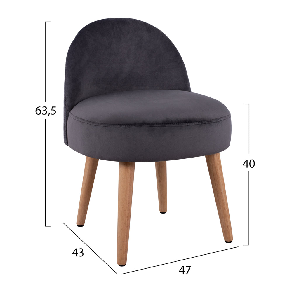 Нотка елегантност, съчетана с безброй цветови вариации и форми. Кадифето винаги се счита за една от най-благородните материи, така че придава много специален чар. Леко лъскавата материя с нейния неповторим вид и усещане не без причина е една от живите тенденции par excellence. Плюшеното покритие прави всичко различно! Табуретка с облегалка YASMINE Цвят: Сив Размери: 47x43x63.5H см. Височина на седалката: 40см. Размери на седалката: 47х38 см.