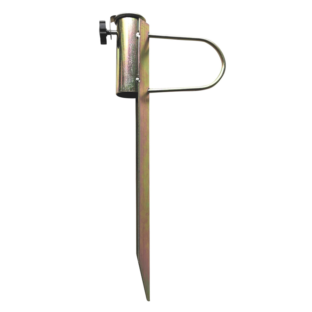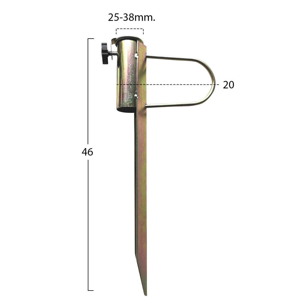 Закована основа за чадър от стомана. Разполага с дръжка и скоба за по-добро задържане на пръта. Подходящ за чадъри до Φ39 мм. Лесен е за транспортиране поради малките си размери и ниско тегло. Височина: 46 см. Тегло: 0,7 kg Материал: стомана Съвместим с диаметри: 25 mm – 39 mm Приложения: Пясък / Мека земя