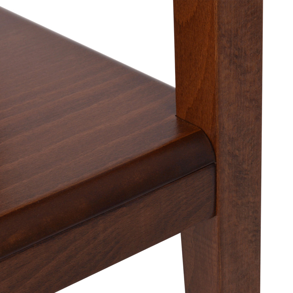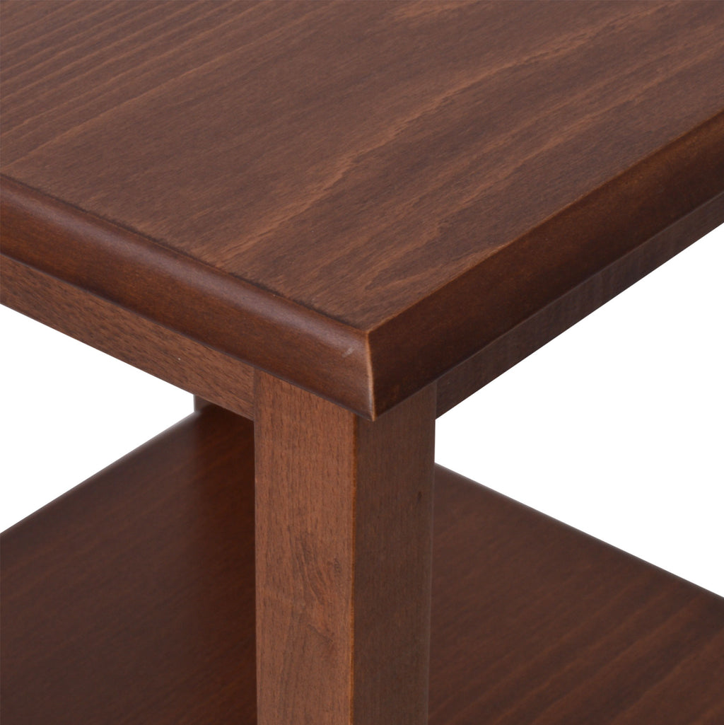Помощна маса, изработена от масивна букова дървесина с рамка и плот от висококачествен мдф. Масата е с междинен рафт с повърхностни размери 33,5х33,5см. Цвят: Орех Размери: 40х40х66см.