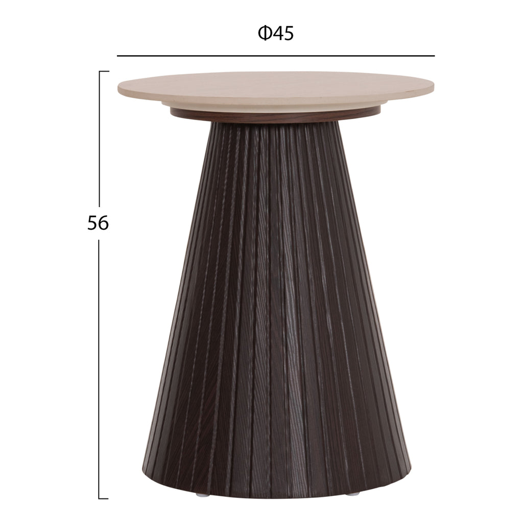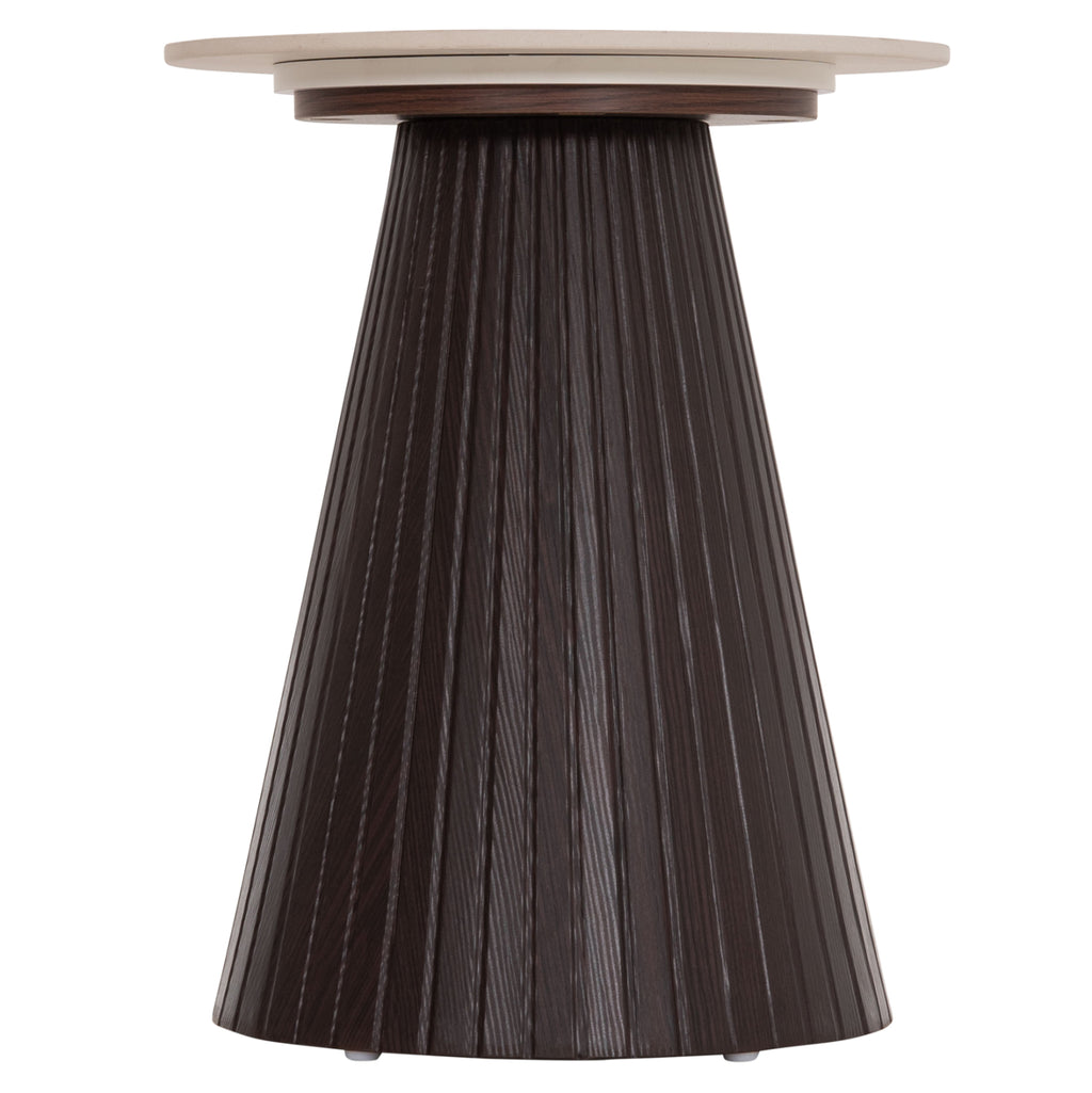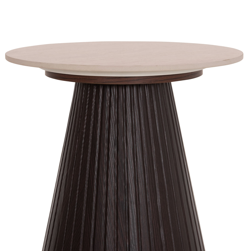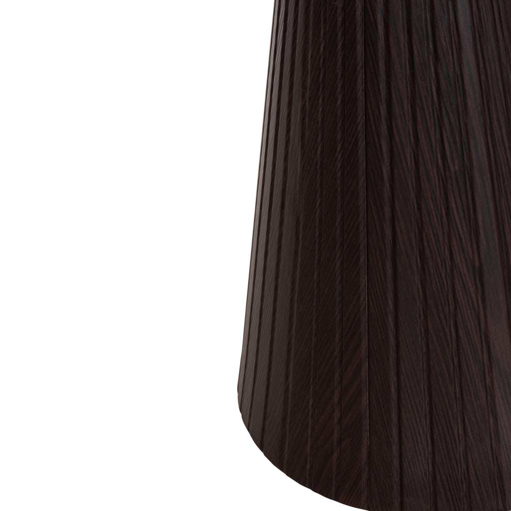 Основата е конична и изработена изцяло от MDF (Medium Density Fiberboard) в тъмен кафяв цвят. MDF е съвременен материал, широко използван в мебелното производство поради своята хомогенност, устойчивост на влага и отлична гладкост. Формата на основата с фини вертикални гънки придава характер и визуална дълбочина на дизайна.