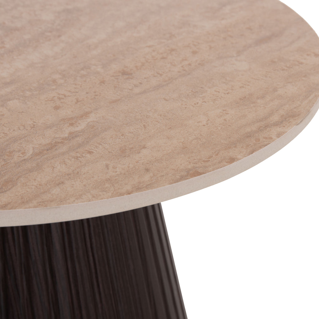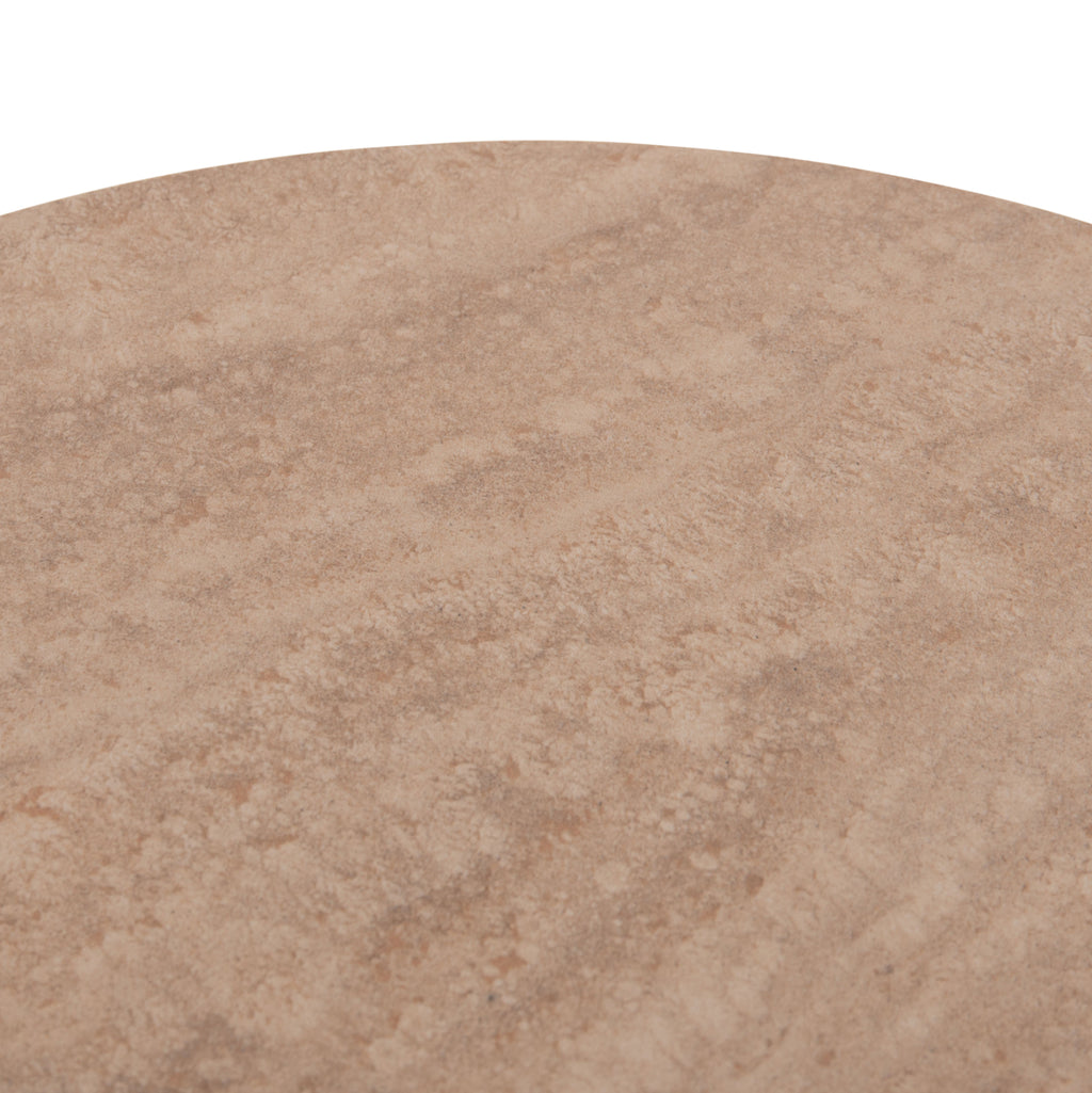 Плотът на страничната маса CATER е изработен от керамика в изискан цвят ТРАВЕРТИН, който придава усещане за естественост и топлина. Керамичният материал се отличава с висока устойчивост на надраскване, топлина и петна, което го прави изключително практичен за ежедневна употреба. Повърхността е непореста и лесна за поддръжка, така че почистването е бързо и без усилие – просто с влажна кърпа.