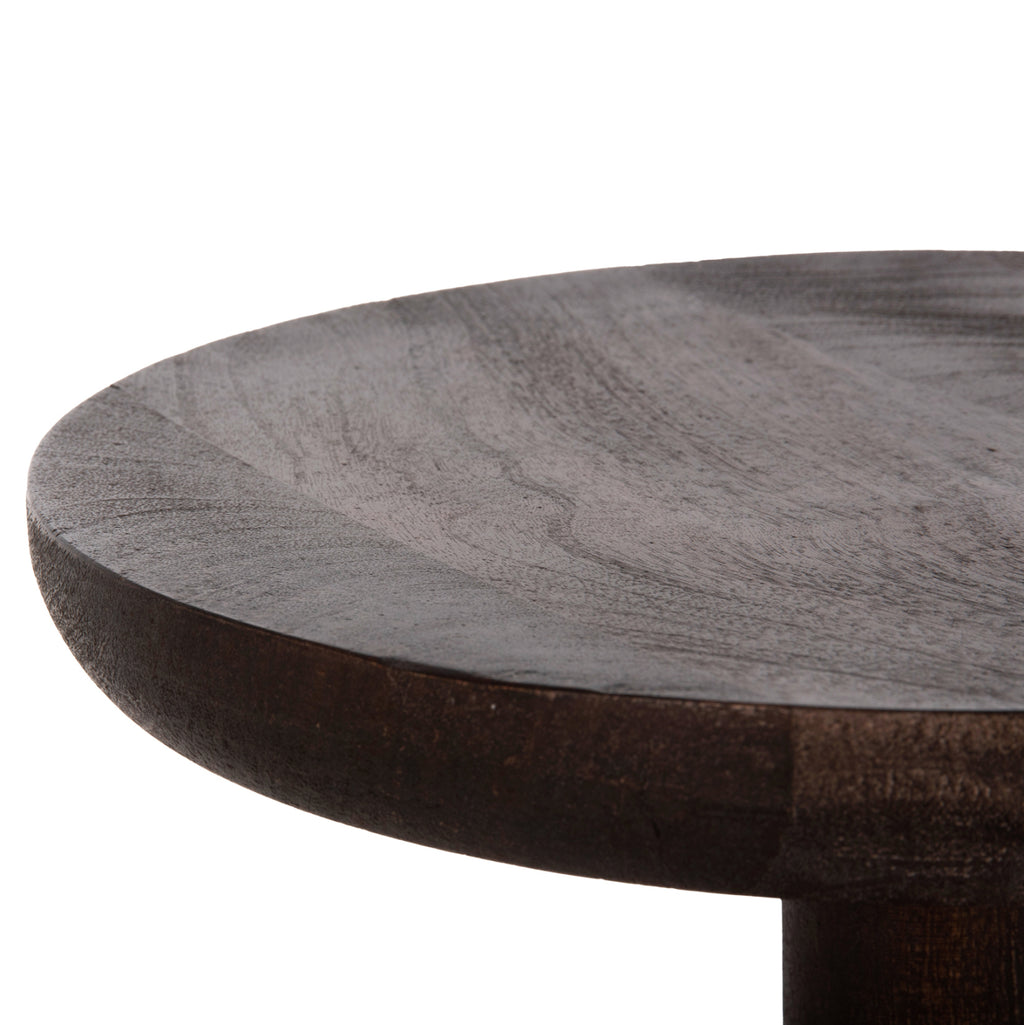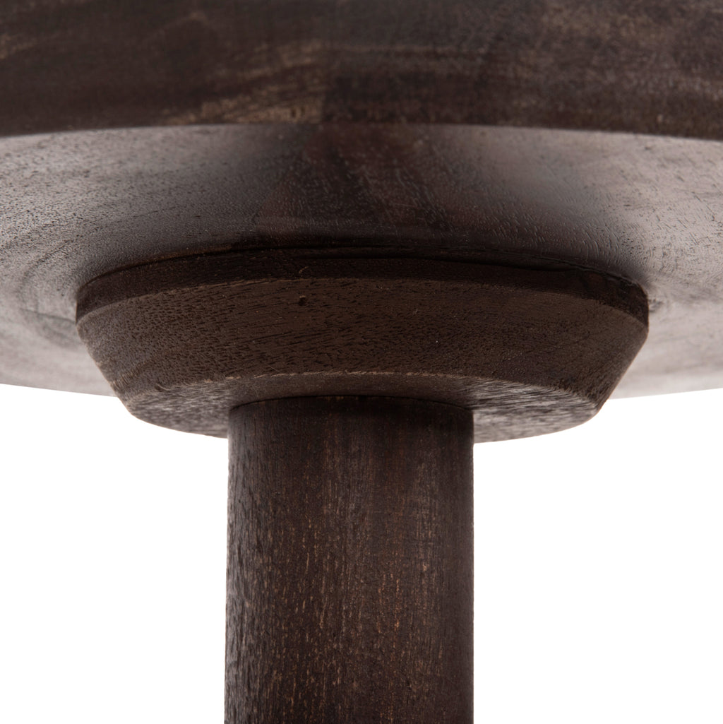 Кръгла холна маса CRABB, изработена изцяло от масивно мангово дърво в ТЪМНО КАФЯВО прилича на табуретка, благодарение на конусообразната форма на основата, която завършва в кръглата повърхност. Маса, която ще впечатли със своята форма и цвят, тъй като е пясъкоструена, придавайки античност на мебелта. РАЗМЕРИ: Φ40x49.5Y cm МАТЕРИАЛ ЗА ИЗРАБОТКА: Продуктът е изработен от естествено масивно МАНГОВО дърво. Когато говорим за масивно дърво, имаме предвид дървета, направени изцяло от ствола на дърво. Масивната дървесина е най-скъпият избор по отношение на дървесината, но се откроява със своята вечна естетика. MANGO е плътна и здрава твърда дървесина с особено привлекателна вода. Неговите дървесни цветове са уникални, тъй като включват няколко тона и цветове, вариращи от светли нюанси като тъмно кафяво до светло розово или зелено. Той е по-лек от другите видове дървесина и е водоустойчив. Съществуващите пукнатини или тези, които могат да се образуват с течение на времето се дължат на свиването-разширяването на живия организъм, наречен масивна дървесина, а не са производствен дефект, придавайки оригиналност и уникален дизайн на вашето пространство. По време на производствения процес съществуващите пукнатини се изглаждат и стабилизират с материал от същата дървесина. Поради това може да има цветови вариации и разлики в размерите на продукта поради размерите на обработената дървесина. Това не са дефект на продукта. ПОДДРЪЖКА: MANGO е силно устойчив на вода, така че можете безопасно да го почиствате с мокри кърпи. ** Цветопредаването на продукта може леко да се различава от неговото фотографско представяне на вашия екран.