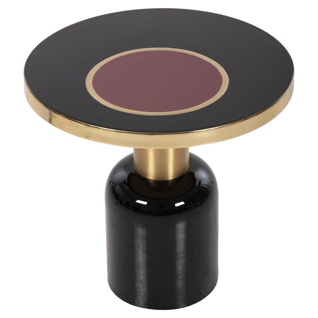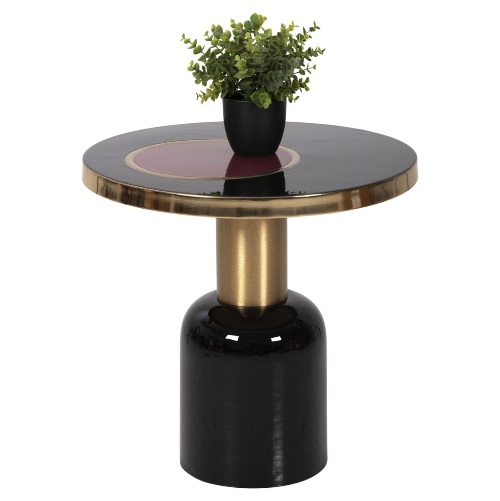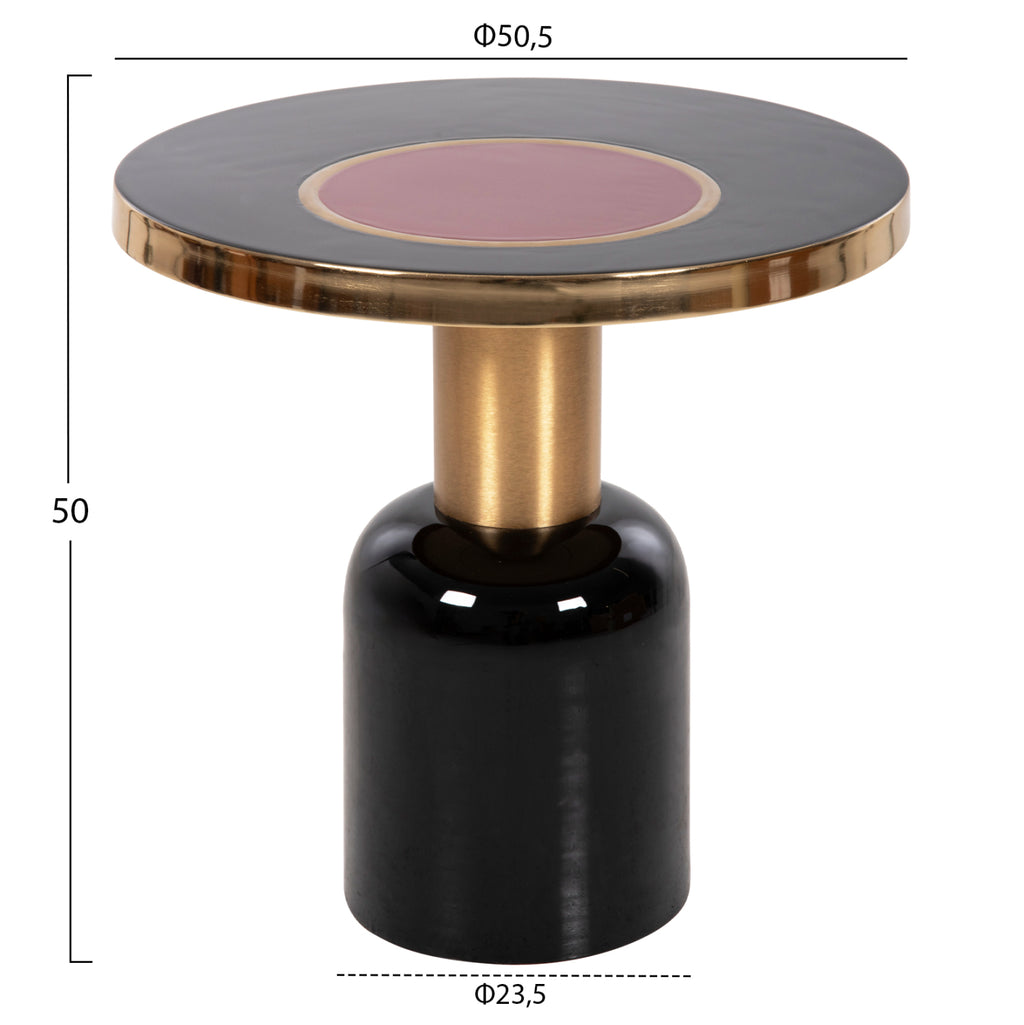 Помощната маса ERODE за всекидневна е едно от новите попълнения в нашата гама. Представлява кръгла метална холна маса с ниска цилиндрична основа и висока шийка, която я свързва с кръглата повърхност. Шийката и периметърът на повърхността са в ЗЛАТЕН цвят, докато основата и повърхността са в ЧЕРЕН цвят с детайли ЧЕРЕША, които придават много специален естетически ефект. Идеален както за дома, така и за бизнес помещения. РАЗМЕРИ: Φ50.5x50H см. Дебелина на повърхността: 3см. Основа: Φ23,5x27H см. ПОДДРЪЖКА: Достатъчно е забърсване с влажна кърпа за полиране на масата. *Масата се доставя разглобена във фабрична опаковка ** Цветопредаването на продукта може леко да се различава от фотографското изображение на вашия екран.