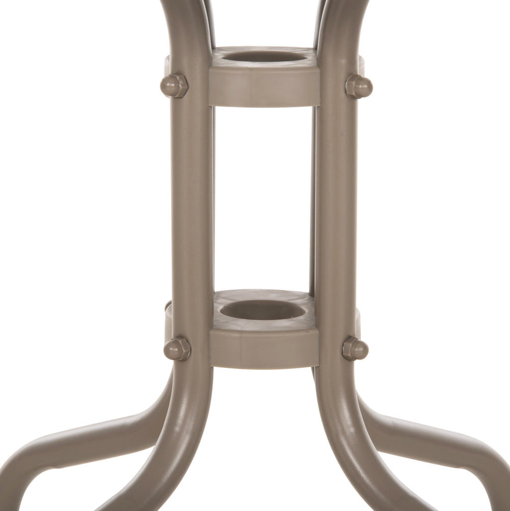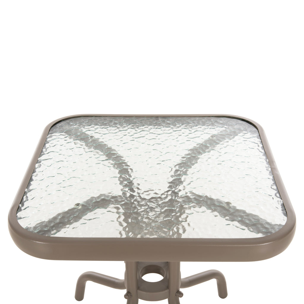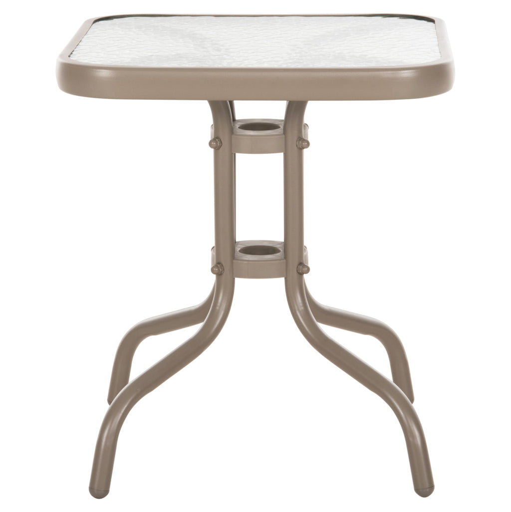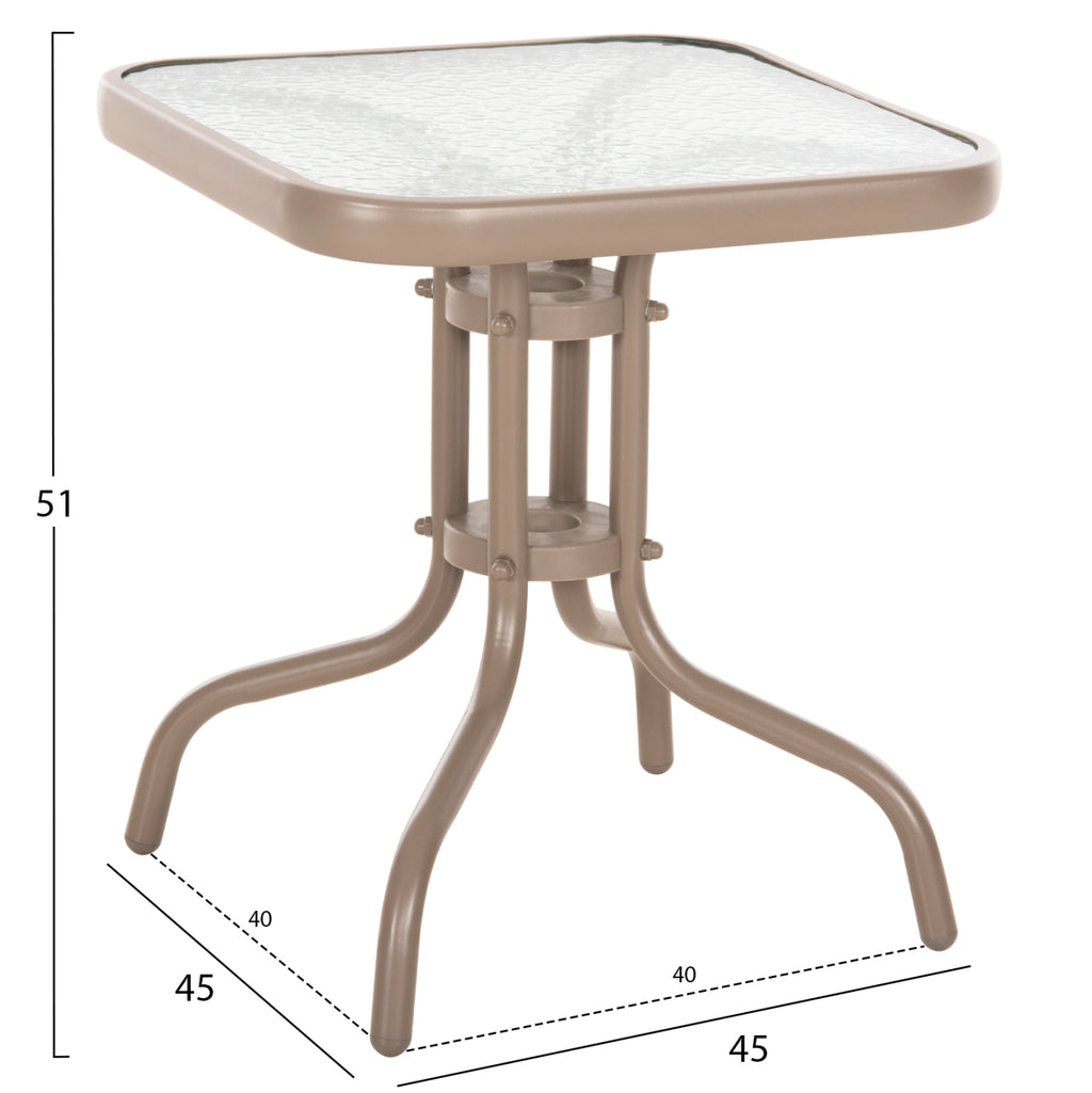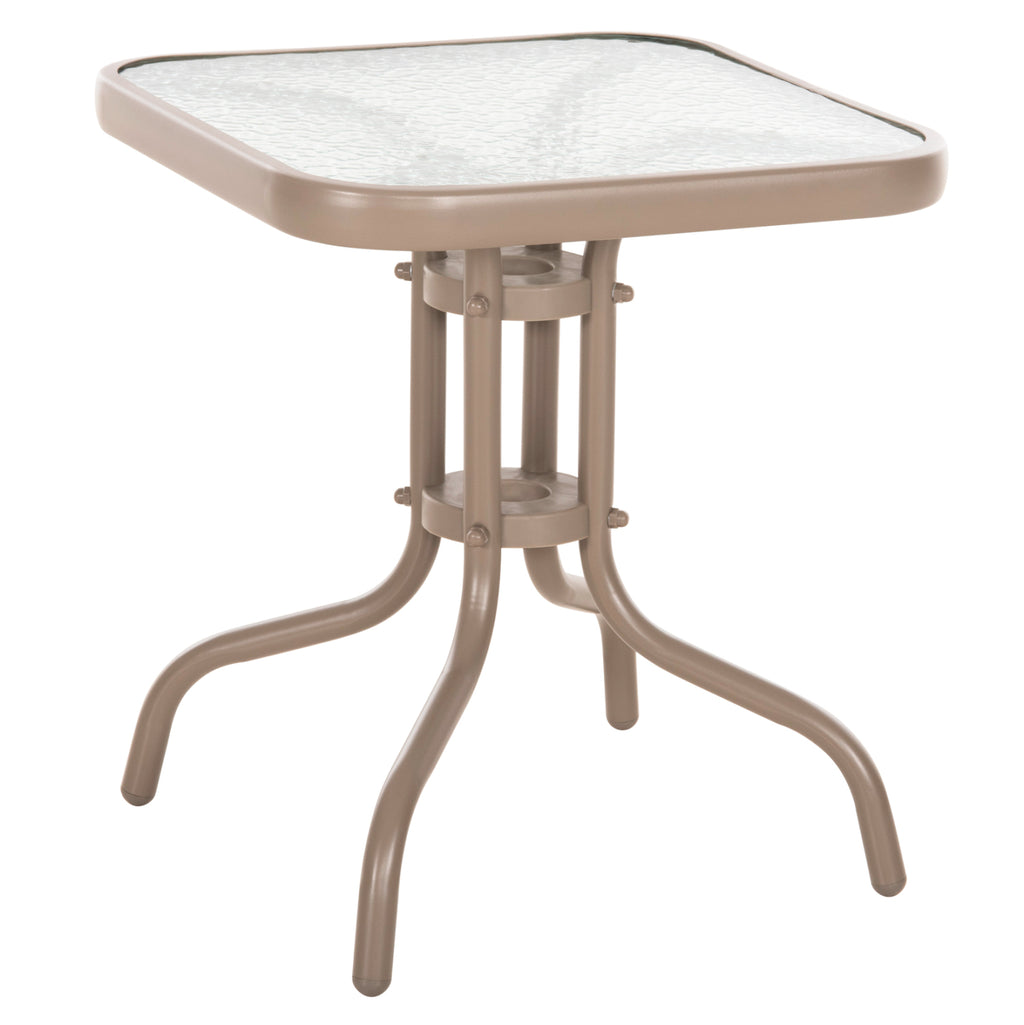 Външната помощна маса FIGO в цвят ШАМПАНСКО е къса, квадратна със заоблени ъгли и извити крака. Това е много популярен модел, който липсва на почти всеки балкон или градина. Холната маса е подходяща и за ограничени пространства, като тераси или малки дворове. РАЗМЕРИ: 45x45x51Y см. Разстояние между краката: 40x40cm Метална рамка: Φ24x0.8mm дебелина МАТЕРИАЛИ НА ИЗРАБОТКА: Рамката е метална с електростатично боядисване. Електростатичното боядисване е процес на сухо покритие, използван като метално покритие. Електростатичното боядисване е нанасяне на сух прах чрез електростатичен процес, който след това се „свързва“ към метала чрез топлина. Плотът е изработен от нечупливо стъкло или безопасно стъкло. Закаленото или "нечупливо" стъкло е вид безопасно стъкло около четири пъти по-здраво от обикновеното стъкло. И за разлика от обикновеното стъкло, което може да се пръсне на назъбени парчета, когато се счупи, закаленото стъкло се разбива на малки, относително безобидни гранулирани парчета. В резултат на това закаленото стъкло се използва в среди, където човешката безопасност е приоритет, като например жилищни приложения и др. ПОДДРЪЖКА: От горното може да се види, че комплектът не се нуждае от специална поддръжка. Достатъчно е минаване с влажна кърпа или дори със специални почистващи препарати. ПРЕДИМСТВА: • Класически и вечен дизайн • Лесна поддръжка • Качествени строителни материали • Невероятно съотношение цена-качество. Масата се доставя в несглобен вид и се сглобява лесно, тъй като всички необходими елементи са включени в пакета. **Точното цветопредаване на продукта може леко да се различава от действителния продукт поради различни настройки на монитора.