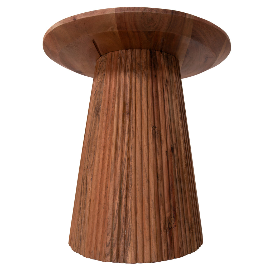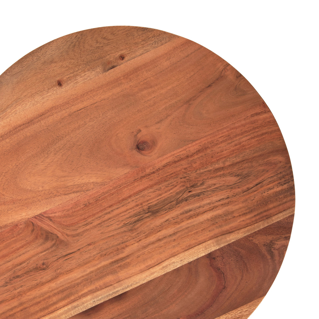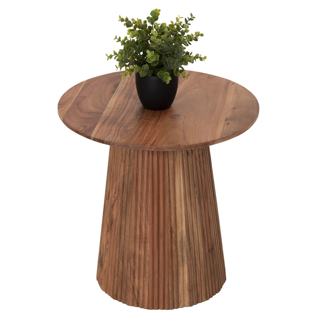 GROOT е малка кръгла помощна масичка за всекидневна в естествен дървесен цвят. Плотът се опира на дървена колона в центъра с конична форма. Тази масичка за кафе ще обнови естетически вашата всекидневна и в същото време ще бъде практична мебел, която ще оцените високо. РАЗМЕРИ: Φ45x44Y см. МАТЕРИАЛИ НА ИЗРАБОТКАТА: Холната маса е изработена от масивно акациево дърво. Когато говорим за масивно дърво, имаме предвид дървета, направени изцяло от ствола на дърво. Масивната дървесина е най-скъпият избор по отношение на дървесината, но се откроява със своята вечна естетика. Ефектът, който предлага на притежателя си е наистина уникален. Акациевото дърво е един от най-добрите видове дървесина на пазара. Неговата механична якост и механични свойства се доближават до тези на други добре познати дървесини като бук, дъб, афцелия, тик и др. Има висока биологична устойчивост, т.е. проявява отлична устойчивост на действието на микроорганизми, които могат да разрушат материала и конструкцията. Съществуващите пукнатини или тези, които могат да се образуват с течение на времето се дължат на свиването-разширяването на живия организъм, наречен масивна дървесина, а не са производствен дефект, придавайки оригиналност и уникален дизайн на вашето пространство. По време на производствения процес съществуващите пукнатини се изглаждат и стабилизират с материал от същата дървесина. Поради това може да има цветови вариации и разлики в размерите на продукта поради размерите на обработената дървесина. Това не са дефект на продукта. ПОДДРЪЖКА: Холната маса не се нуждае от специална поддръжка. Достатъчно е минаване с влажна кърпа, а ако има петна с нежен спрей от многото на пазара. Като цяло, дори и при петна, тайната е бързото почистване, преди дървото да има време да се "напои". *Доставя се несглобен във фабрична опаковка ** Цветопредаването на продукта може леко да се различава от фотографското представяне на вашия екран.