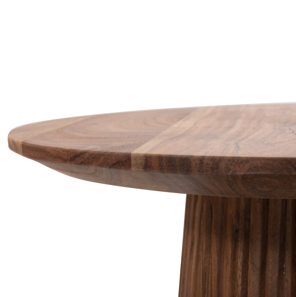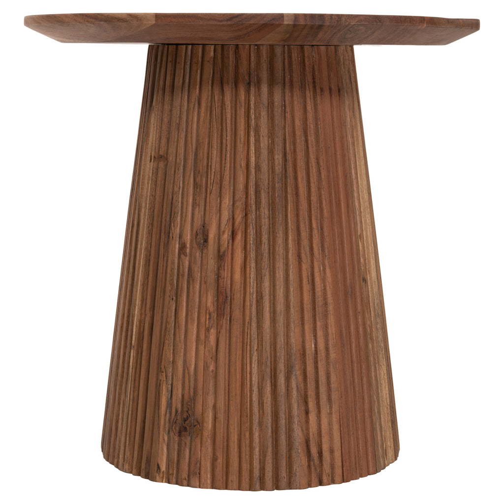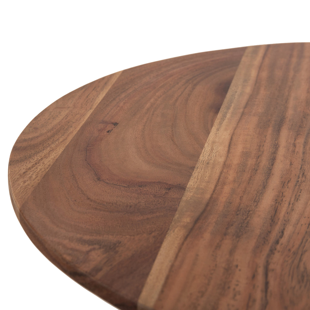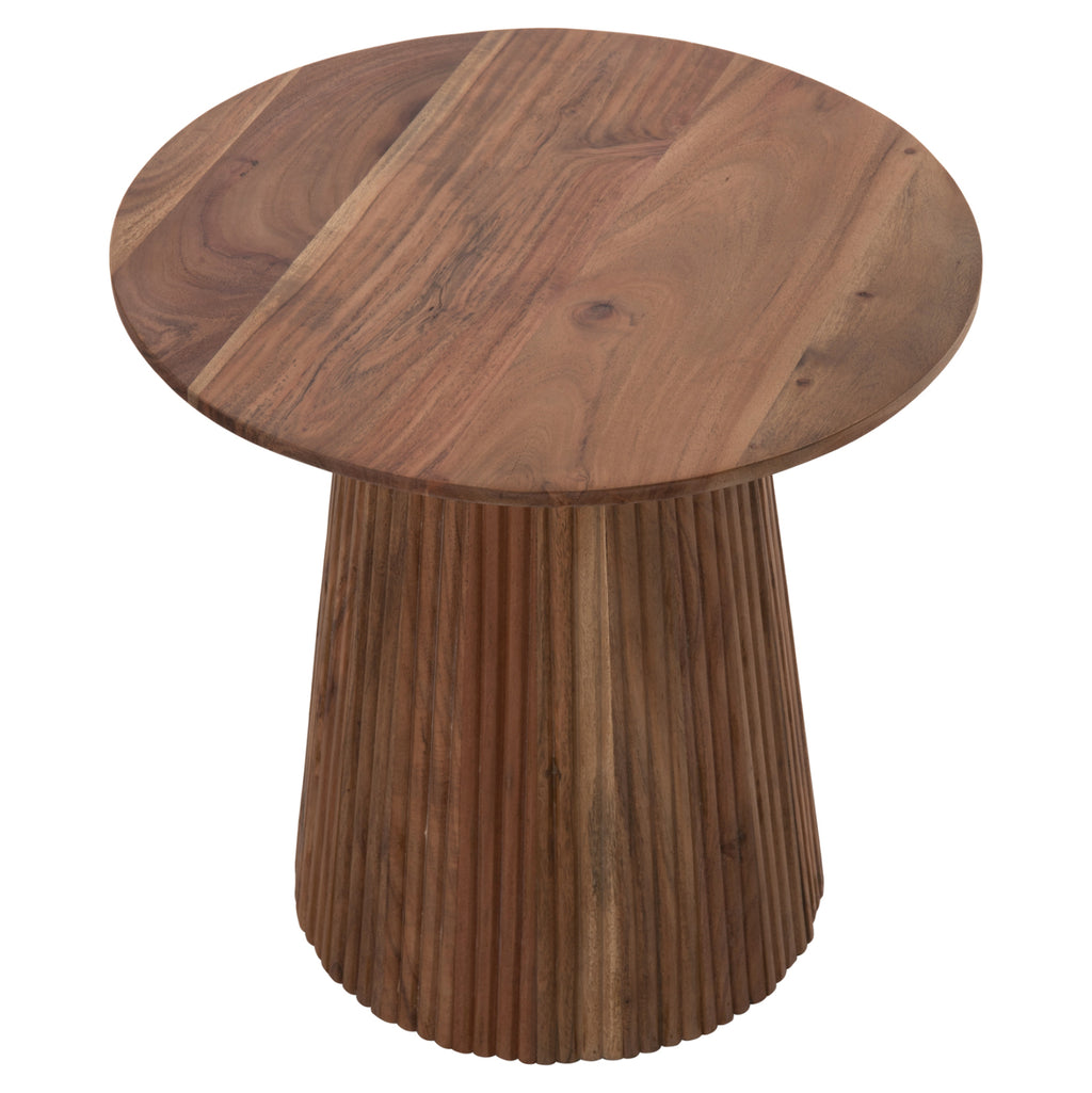 GROOT е малка кръгла помощна масичка за всекидневна в естествен дървесен цвят. Плотът се опира на дървена колона в центъра с конична форма. Тази масичка за кафе ще обнови естетически вашата всекидневна и в същото време ще бъде практична мебел, която ще оцените високо. РАЗМЕРИ: Φ45x44Y см. МАТЕРИАЛИ НА ИЗРАБОТКАТА: Холната маса е изработена от масивно акациево дърво. Когато говорим за масивно дърво, имаме предвид дървета, направени изцяло от ствола на дърво. Масивната дървесина е най-скъпият избор по отношение на дървесината, но се откроява със своята вечна естетика. Ефектът, който предлага на притежателя си е наистина уникален. Акациевото дърво е един от най-добрите видове дървесина на пазара. Неговата механична якост и механични свойства се доближават до тези на други добре познати дървесини като бук, дъб, афцелия, тик и др. Има висока биологична устойчивост, т.е. проявява отлична устойчивост на действието на микроорганизми, които могат да разрушат материала и конструкцията. Съществуващите пукнатини или тези, които могат да се образуват с течение на времето се дължат на свиването-разширяването на живия организъм, наречен масивна дървесина, а не са производствен дефект, придавайки оригиналност и уникален дизайн на вашето пространство. По време на производствения процес съществуващите пукнатини се изглаждат и стабилизират с материал от същата дървесина. Поради това може да има цветови вариации и разлики в размерите на продукта поради размерите на обработената дървесина. Това не са дефект на продукта. ПОДДРЪЖКА: Холната маса не се нуждае от специална поддръжка. Достатъчно е минаване с влажна кърпа, а ако има петна с нежен спрей от многото на пазара. Като цяло, дори и при петна, тайната е бързото почистване, преди дървото да има време да се "напои". *Доставя се несглобен във фабрична опаковка ** Цветопредаването на продукта може леко да се различава от фотографското представяне на вашия екран.