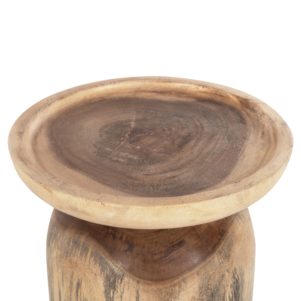 Открийте уникалната кръгла помощна маса LOKI от масивно дърво SUAR в цвят NATURAL с повърхност в стил плоча. Рустик дизайнът придава вечно и топло усещане на вашето пространство. Идеалният избор е както за дома, така и за хотели или ресторанти и др. РАЗМЕРИ: Φ30x46H см.---*Цветопредаването на продукта може леко да се различава от това, което виждате на екрана. ---*Размерите са ориентировъчни. Възможно е да има разлики в размерите на продукта поради размерите на обработената дървесина. МАТЕРИАЛИ НА ИЗРАБОТКА: Холната маса е изработена от масивно SUAR дърво. Когато говорим за масивно дърво, имаме предвид дървета, направени изцяло от ствола на дърво. Масивната дървесина е най-скъпият избор по отношение на дървесината, но се откроява със своята вечна естетика. Suar wood е дървесината на дървото Albizia Saman, понякога наричано дъждовно дърво, дърво, произхождащо от Южна Америка. Това дърво е въведено в Индонезия като плантационно дърво. Дървесината е известна под много различни имена, включително Monkeypod, Samenes Saman, Parota, South American Walnut и Acadia, както и Suar Wood. Правилно изсушено, суровото дърво е много здраво и издръжливо. Всяко парче суарско дърво е уникално. **Съществуващите пукнатини или такива, които могат да се образуват с течение на времето се дължат на свиването-разширяването на живия организъм, наречен масивна дървесина, а не са производствен дефект, придавайки оригиналност и уникален дизайн на вашето пространство. По време на производствения процес съществуващите пукнатини се изглаждат и стабилизират с материал от същата дървесина. Поради това може да има цветови вариации и разлики в размерите на продукта поради размерите на обработената дървесина. Това не са дефект на продукта. ПОДДРЪЖКА: Холната маса не се нуждае от специална поддръжка. Достатъчно е минаване с влажна кърпа, а ако има петна с нежен спрей от многото на пазара. Като цяло, дори и при петна, тайната е бързото почистване, преди дървото да има време да се "напои". *Всеки декоративен елемент от снимката на продукта не е част от него.