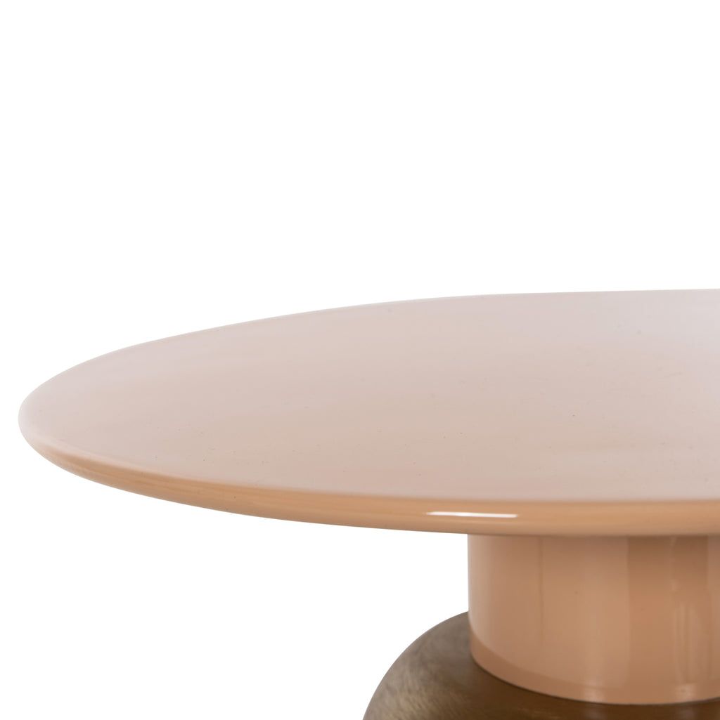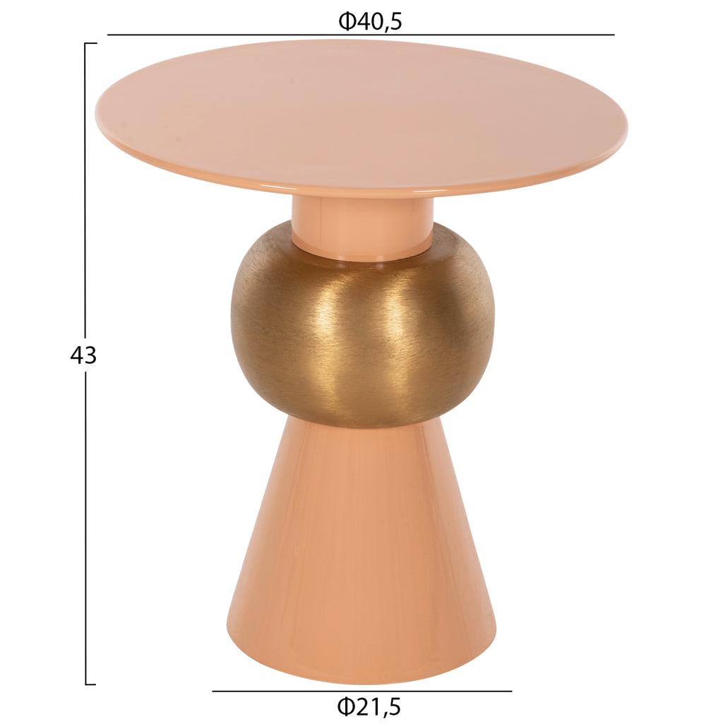 Помощната маса за всекидневна PATNA е едно от новите попълнения в нашата гама. Представлява кръгла метална маса с конична основа и шийка, която я свързва с кръглата повърхност. На врата има "пръстен" в цвят GOLD, който придава красив двуцветен цвят, тъй като всичко останало е в цвят SALMON. Идеален както за дома, така и за бизнес помещения. РАЗМЕРИ: Φ40.5x43H см. Дебелина на повърхността: 1см. Основа: Φ21.5H cm. ПОДДРЪЖКА: Достатъчно е забърсване с влажна кърпа за полиране на масата. *Масата се доставя разглобена във фабрична опаковка ** Цветопредаването на продукта може леко да се различава от фотографското изображение на вашия екран.