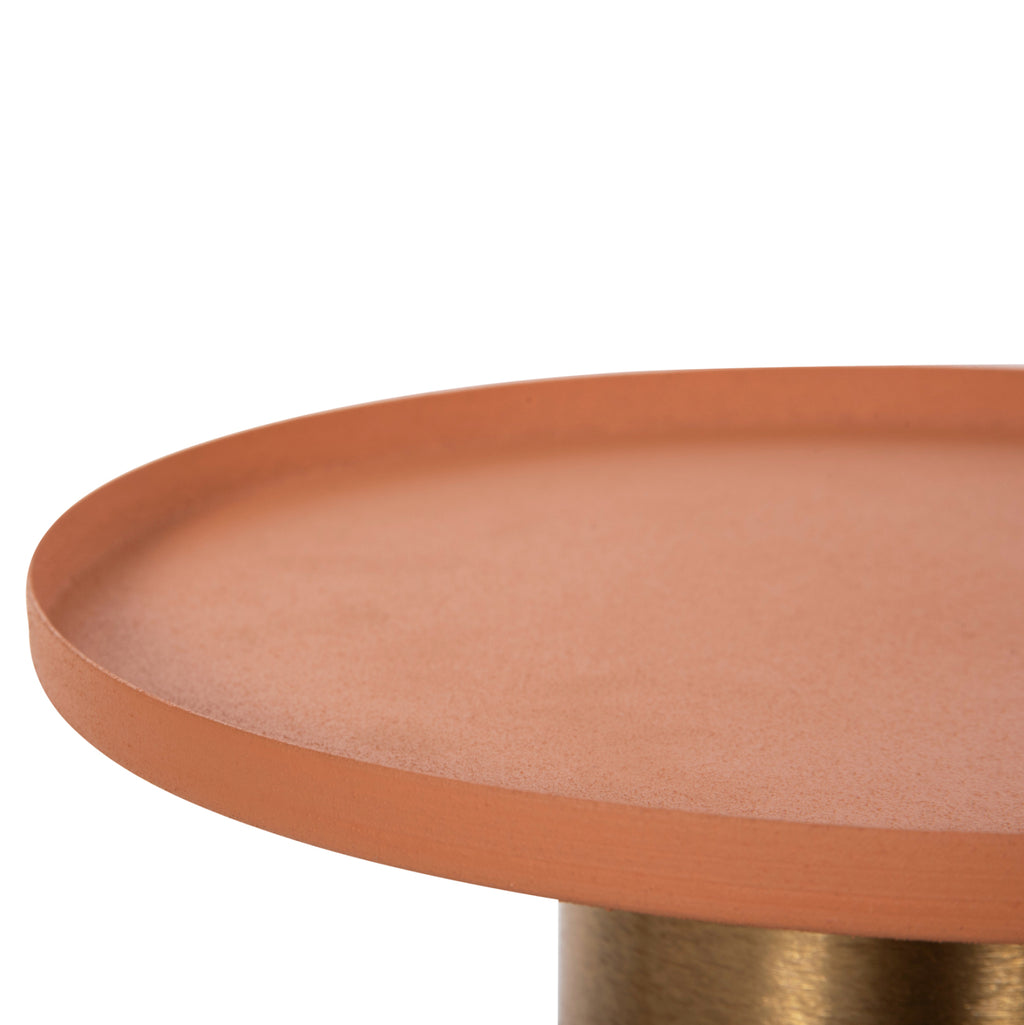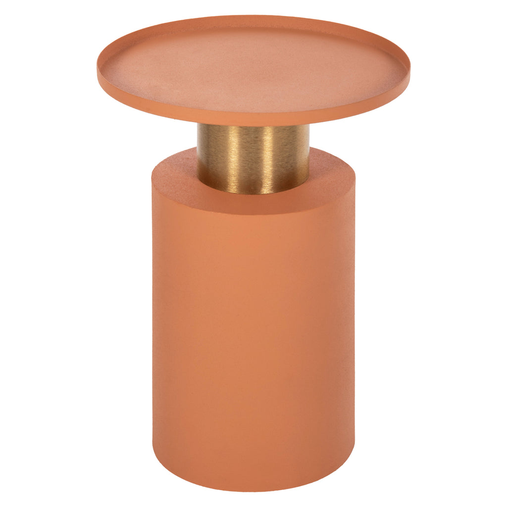 Помощната масичка PUNJAB за всекидневна е едно от новите попълнения в нашата гама. Представлява кръгла холна маса с цилиндрична основа и метал. Цветът му е ОРАНЖЕВ, както и повърхността, а "шията" е златисто-медна. Особеността на тази маса са лъскавите и матови повърхности, които придават усещане за чистота и лукс на вашия хол, както и това, че периметърът на повърхността е повдигнат и прилича на чиния. Идеален както за дома, така и за бизнес помещения.