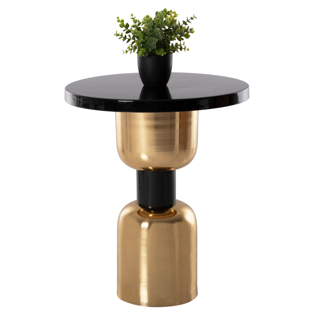 Помощната маса SURAT за всекидневна е едно от новите попълнения в нашата гама. Това е кръгла метална холна маса със сложна цилиндрична основа и гърло. Масата е в красив двуцветен цвят BLACK-GOLD, който придава усещане за чистота на пространството. Идеален както за дома, така и за бизнес помещения. РАЗМЕРИ: Φ50.5x59.5H см. Дебелина на повърхността: 3см. Основа: Φ23,5x27H см. ПОДДРЪЖКА: Достатъчно е забърсване с влажна кърпа за полиране на масата. *Масата се доставя разглобена във фабрична опаковка ** Цветопредаването на продукта може леко да се различава от фотографското изображение на вашия екран.