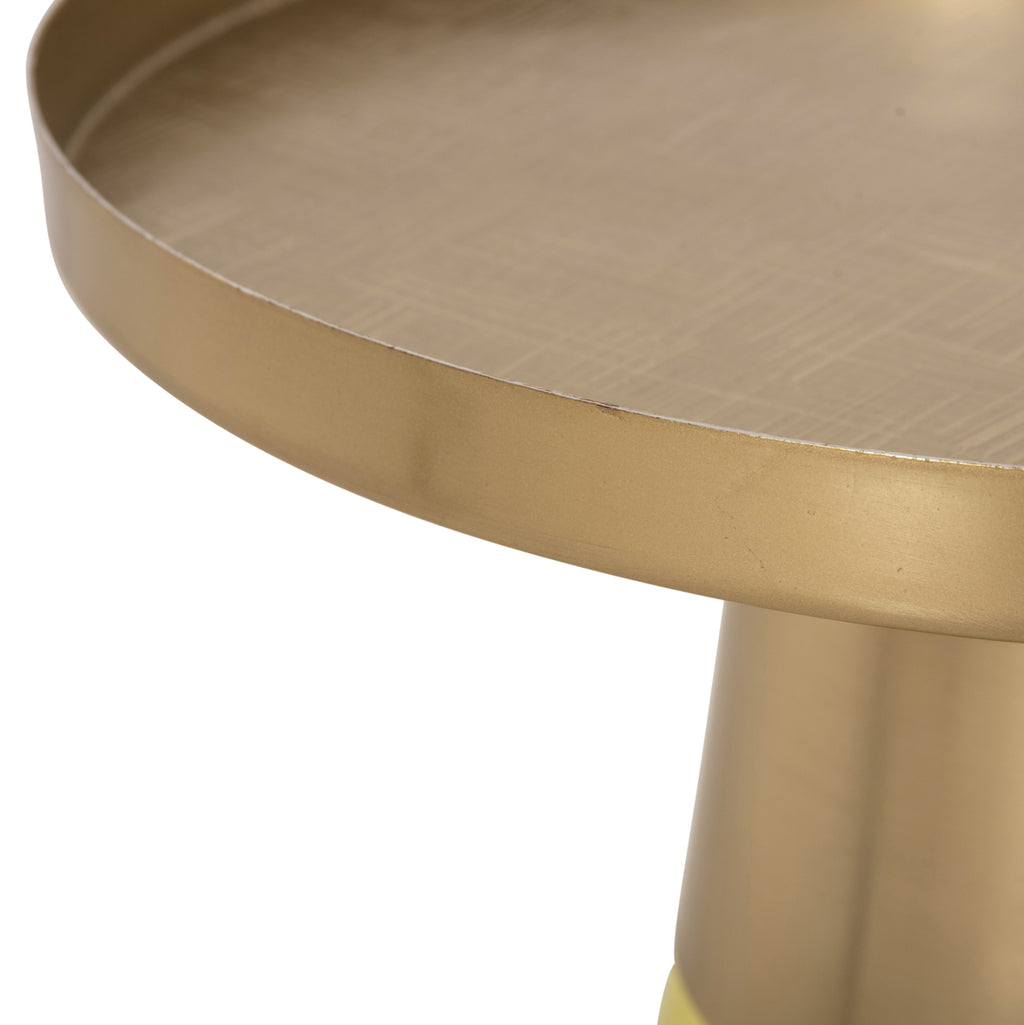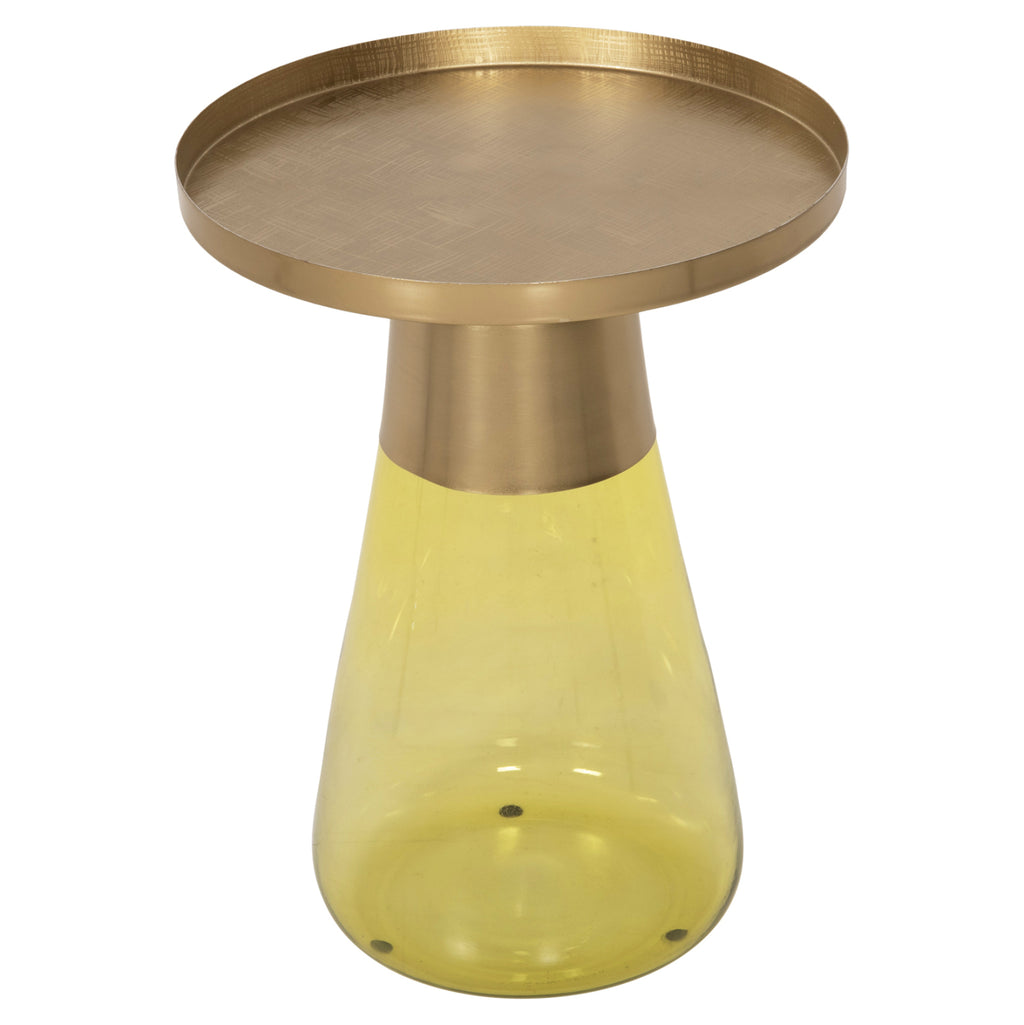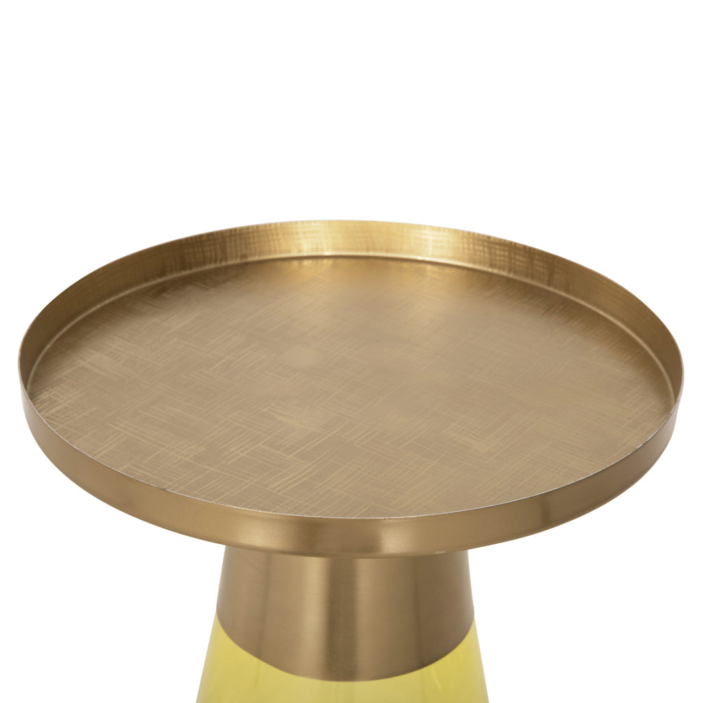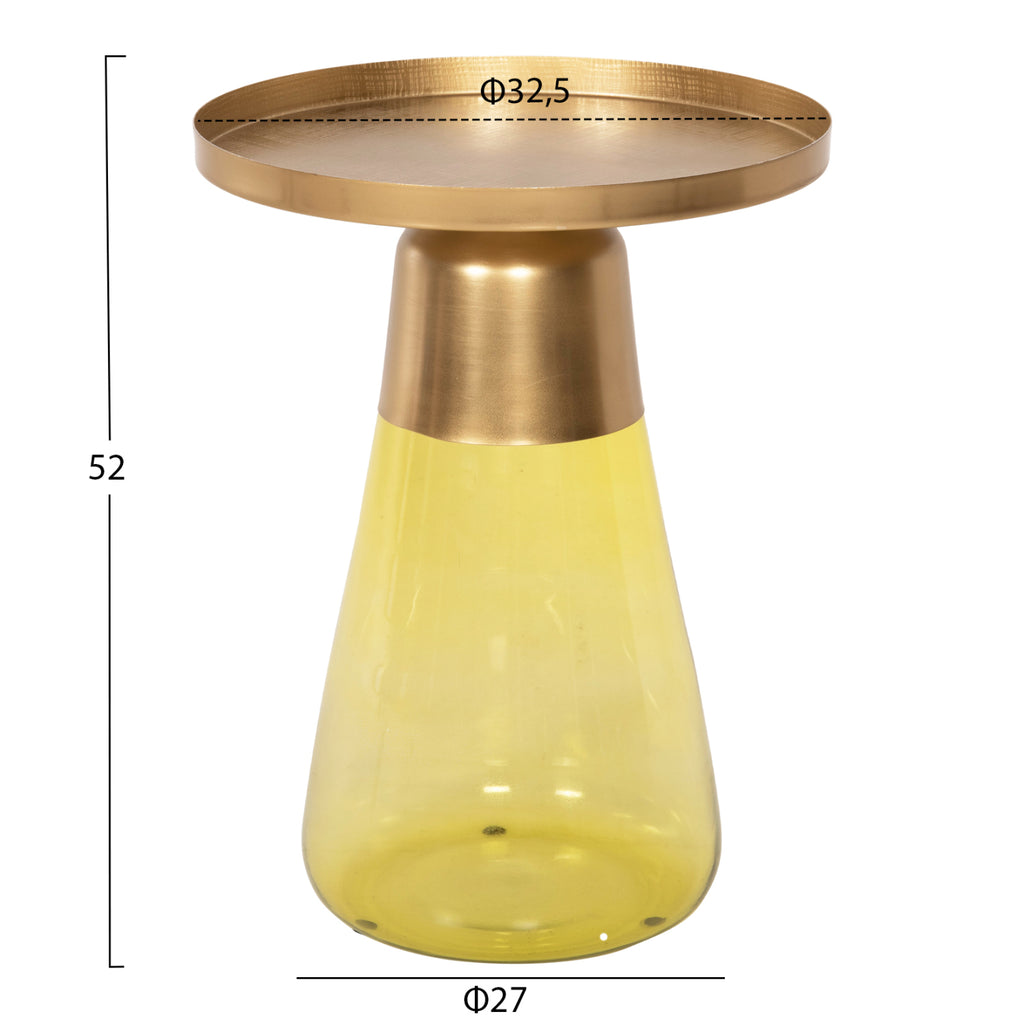 Изключителната помощна маса VALERY е със стъклена конусовидна основа в прозрачен СВЕТЛО ЗЕЛЕН цвят и метални "гърло" и плот в блестящ цвят GOLD. Холната маса придава усещане за лукс и е идеална както за дома, така и за бизнес пространството. РАЗМЕРИ: Φ39.5x52H см. Основа: Φ27 см. ПОДДРЪЖКА: Забърсване с влажна кърпа е достатъчно за полиране на всички повърхности на масата. *Масата се доставя разглобена във фабрична опаковка ** Цветопредаването на продукта може леко да се различава от фотографското изображение на вашия екран.