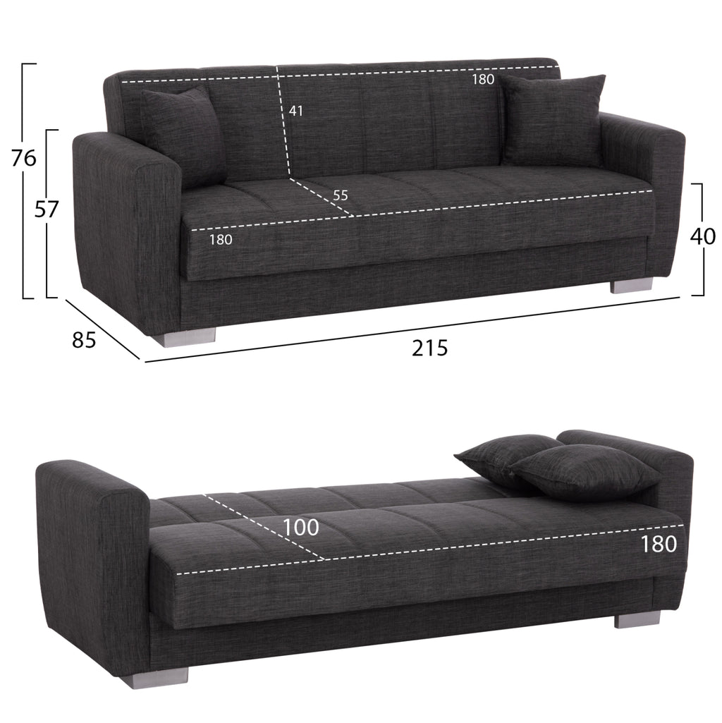 Този комплект включва разтегателен диван, ТВ шкаф, антре, холна маса! Детайли: КГ8984.12- Мебели за антре с огледало и чекмедже—Меламин в ТЕКСТУРА ЕСТЕСТВЕН КАМЪК Размери: 49.1x31.3x90H см. 180x29.6x45cm Повърхност на рафта: 90x29.6x8.2cm. Стенен рафт: 60x19.6(шир.)x19.6Hcm КГ9528.02- Меламинова масичка за кафе в цвят НАТУРАЛЕН КАМЪК Размери: 110x55x47H cm КГ3240.03- 3-местен диван с място за съхранение---СИВ плат—2 възглавници Размери: 215x85x76H см. Размери на седалката: 180х55 см. Размери на гърба: 180х41см. Височина на ръцете: 57 см. Височина на седалката: 40см. Размери на леглото: 180х100 см. Складово пространство: 84.5x60x16H см.(x2) *Продуктите се доставят необременени във фабрична опаковка