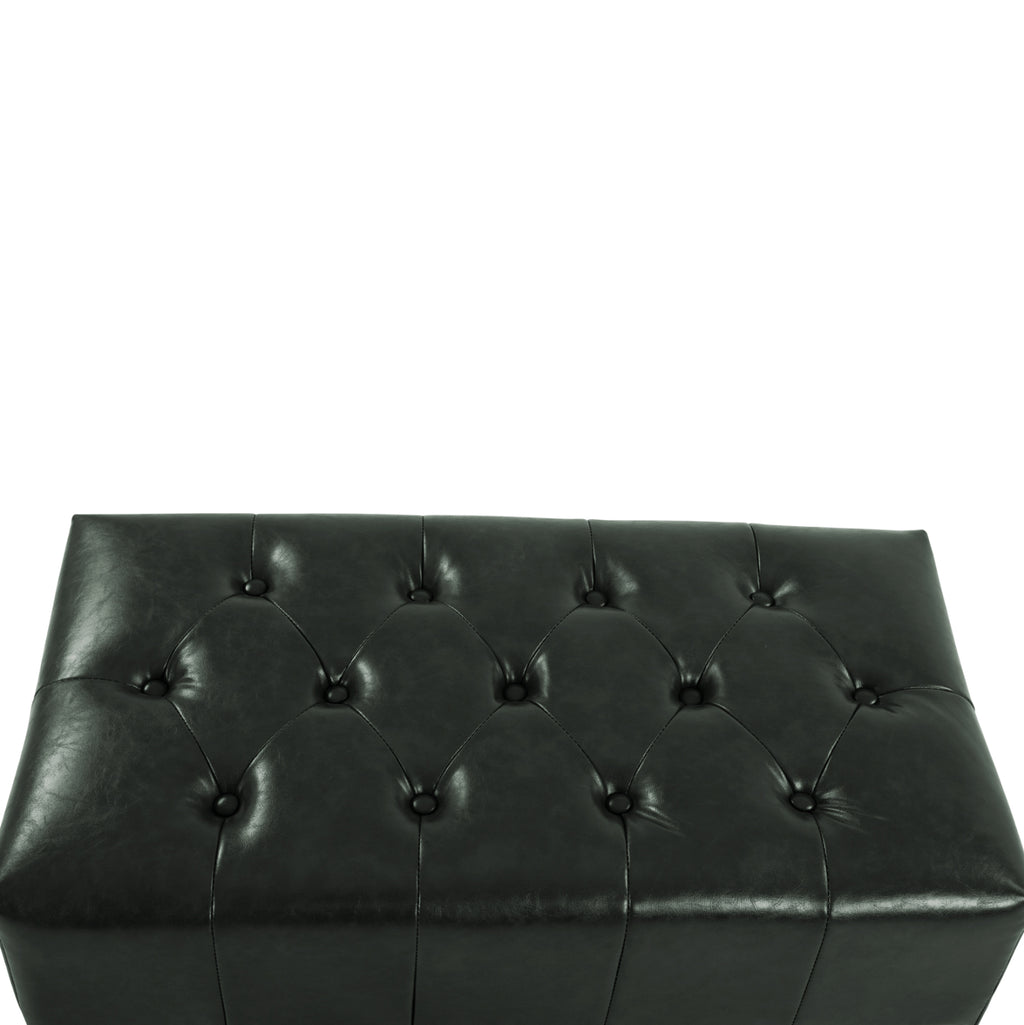 Chesterfield табуретка-табуретка EMMA от PU кожа в цвят CYPARISSI. Има дървени крака в черен нюанс. Елегантна табуретка за крака, която ще обнови вашето пространство, придавайки усещане за лукс. Размери: 80x45x39Y см. ** Цветопредаването на продукта може леко да се различава от неговото фотографско представяне на вашия екран.