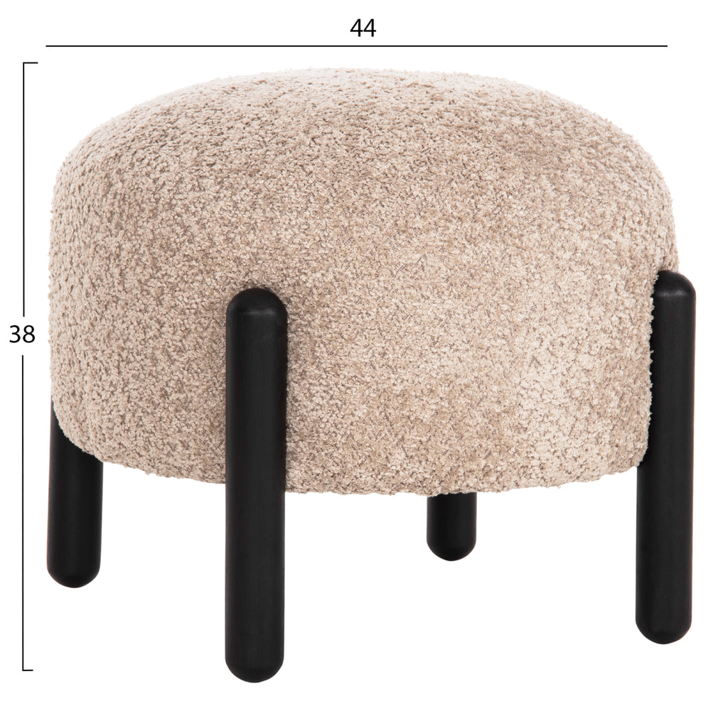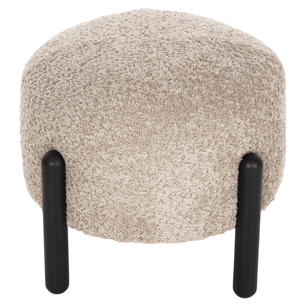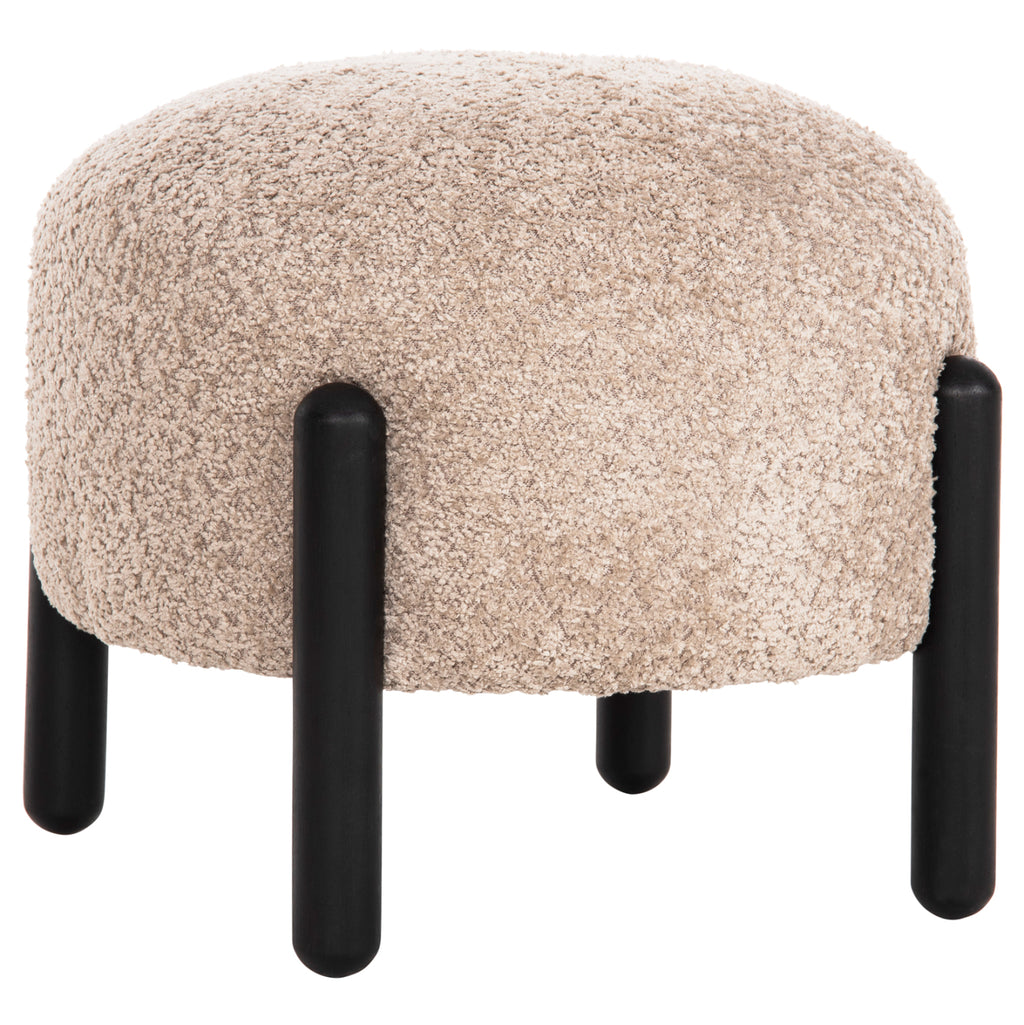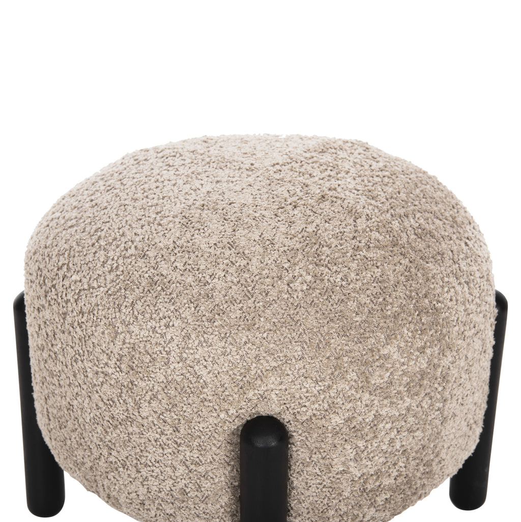Табуретка EWAN е модерно и стилно предложение, което ще остави своя отпечатък във всяка всекидневна, където е поставена. Кръглата ѝ форма, съчетана с топлия букле плат в БЕЖОВ цвят и черните метални крака, образуват красива и практична мебел, която може да се комбинира с множество други цветове в декорацията на хола.