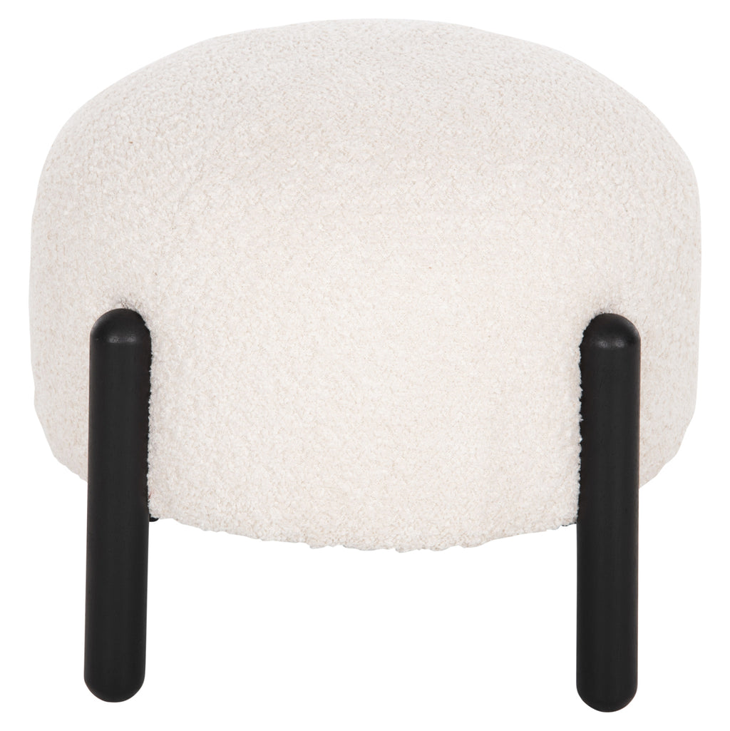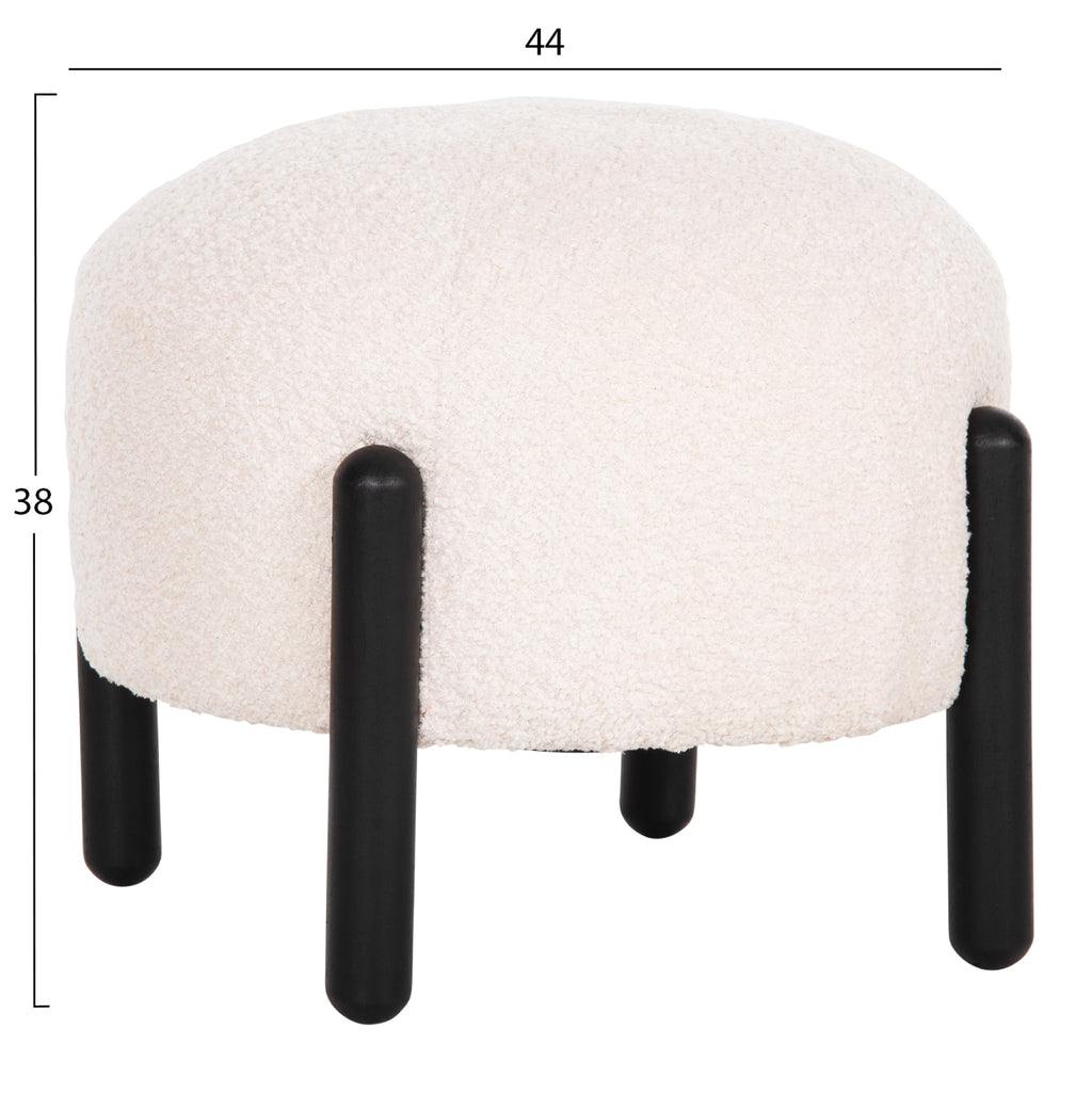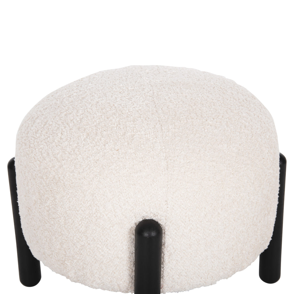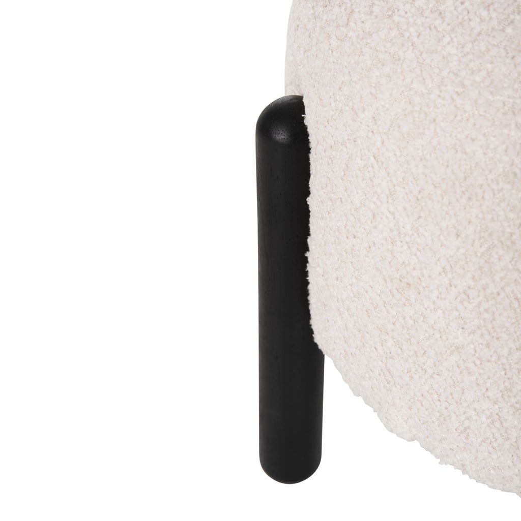 Табуретка EWAN е модерно и стилно предложение, което ще остави своя отпечатък във всяка всекидневна, където е поставена. Кръглата ѝ форма, съчетана с топлия букле плат в цвят екрю и черните метални крака, образуват красива и практична мебел, която може да се комбинира с множество други цветове в декорацията на хола.