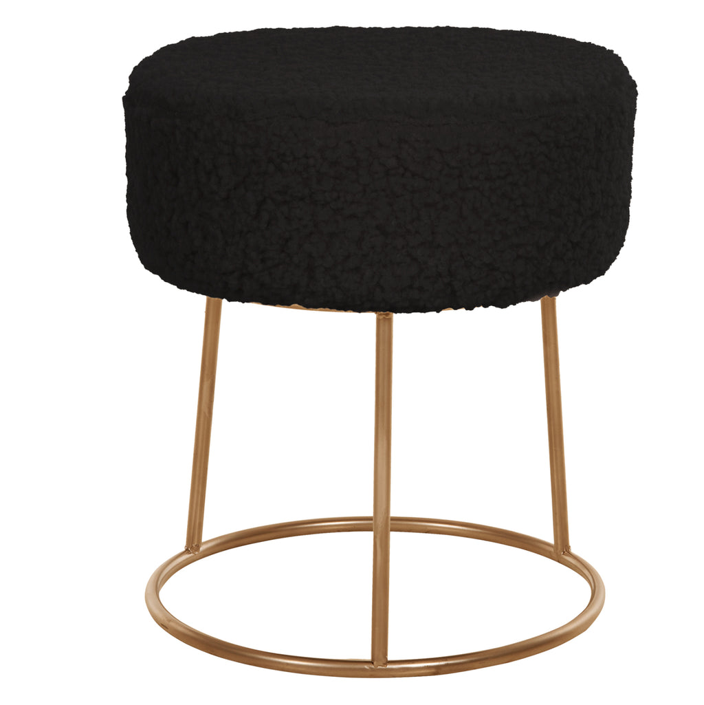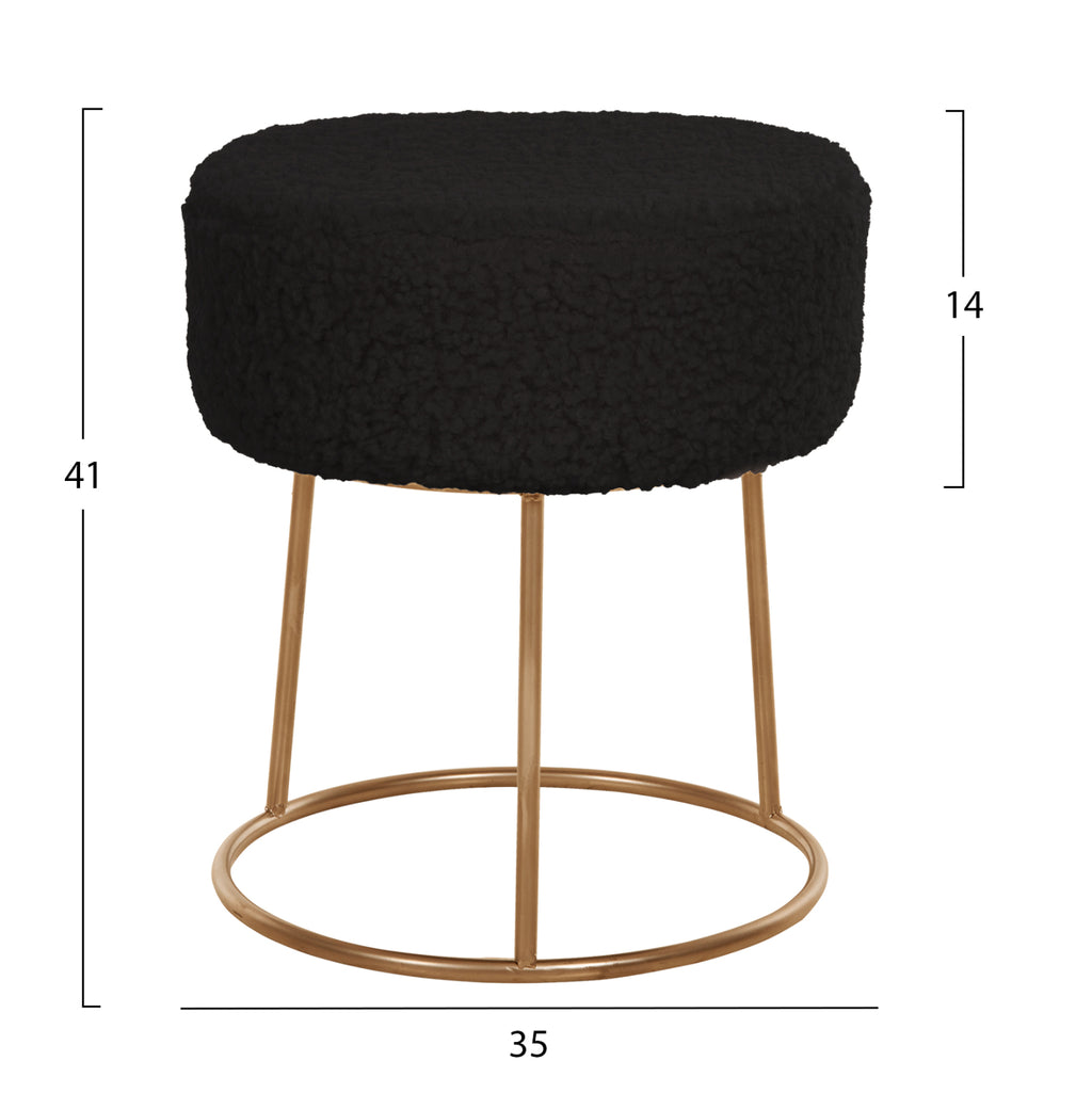 Табуретка KARLO е модерно и стилно предложение, което ще остави отпечатък във всеки хол. Кръглата му форма с кръглата метална основа GOLD, съчетана с топъл плат букле в ЧЕРЕН цвят, съставляват красива и практична мебел, която може да се съчетае с множество други цветове в декорацията на хола. РАЗМЕРИ: Φ35x41H см. Дебелина на седалката: 14см. МАТЕРИАЛИ НА КОНСТРУКЦИЯТА: Основата е метална, предлагаща здравина, както и устойчивост във времето. Подплатата е изцяло изработена от плат букле с отлично качество. Всяка тъкан, която има извиване на възел, се нарича букле. Изработено е от почти всички суровини (въпреки че обикновено е синтетично) със специални възли или силно усукани конци, така че да има къдрава повърхност. Не се мачка и може да бъде изчистена, меланжирана, карирана или туид. ПОДДРЪЖКА: Платът от букле можете да избършете с прахосмукачка, а при петна използвайте леко влажна кърпа. ПРЕДИМСТВА: •Здрава конструкция •Естетично превъзходство с материята букле на хастара •Модерен дизайн •Лесна поддръжка