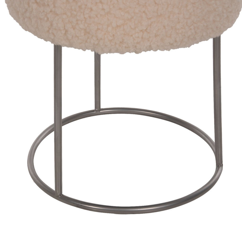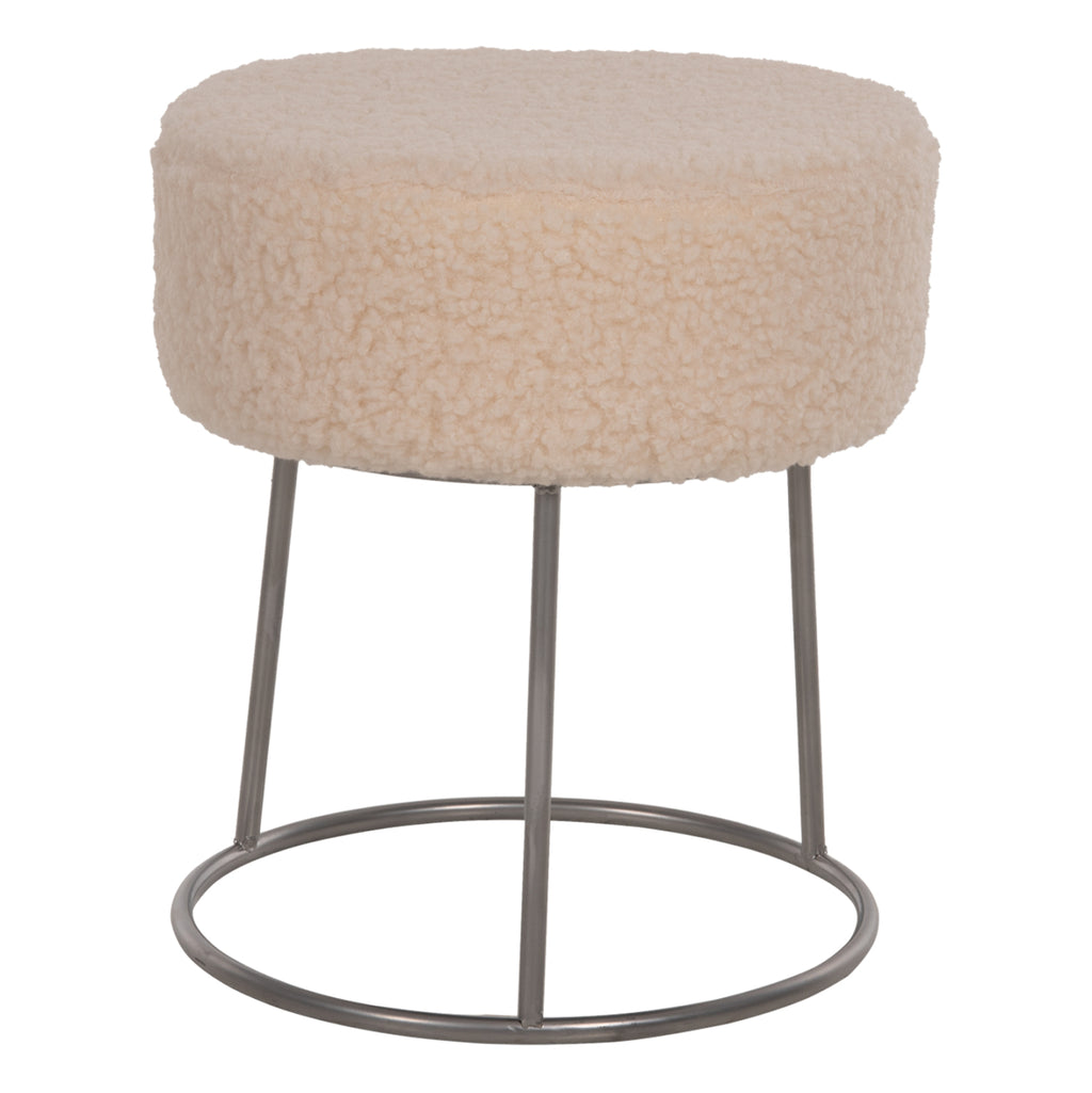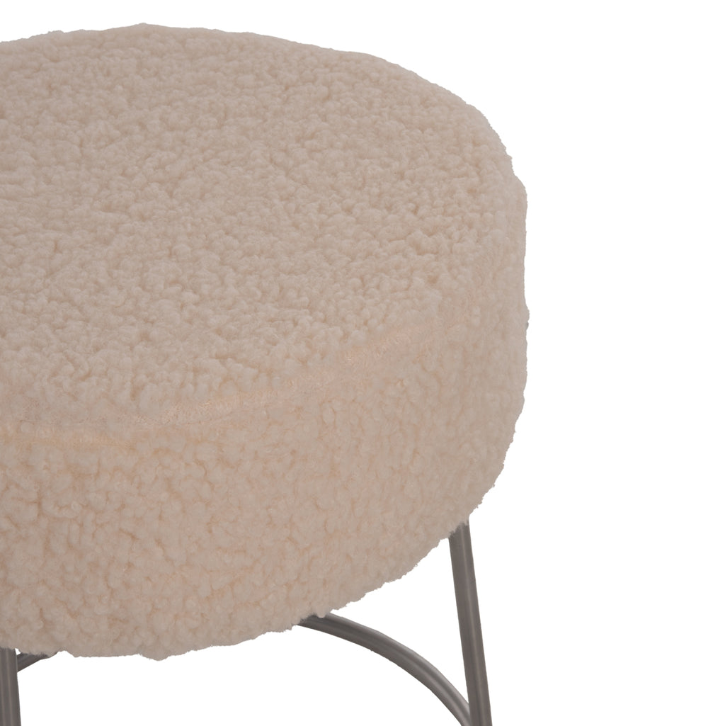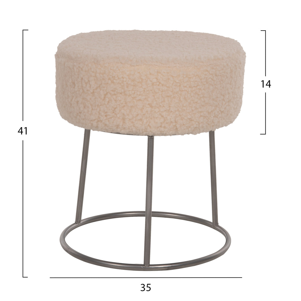 Табуретка KARLO е модерно и стилно предложение, което ще остави отпечатък във всеки хол. Кръглата му форма с кръглата сребриста метална основа, съчетана с топъл плат букле в неутрален, но ярък БЯЛ цвят, съставляват красива и практична мебел, която може да се съчетае с различни други цветове в декорацията на хола. РАЗМЕРИ: Φ35x41H см. Дебелина на седалката: 14см. МАТЕРИАЛИ НА КОНСТРУКЦИЯТА: Основата е метална, предлагаща здравина, както и устойчивост във времето. Подплатата е изцяло изработена от плат букле с отлично качество. Всяка тъкан, която има извиване на възел, се нарича букле. Изработено е от почти всички суровини (въпреки че обикновено е синтетично) със специални възли или силно усукани конци, така че да има къдрава повърхност. Не се мачка и може да бъде изчистена, меланжирана, карирана или туид. ПОДДРЪЖКА: Платът от букле можете да избършете с прахосмукачка, а при петна използвайте леко влажна кърпа. ПРЕДИМСТВА: •Здрава конструкция •Естетично превъзходство с материята букле на хастара •Модерен дизайн •Лесна поддръжка