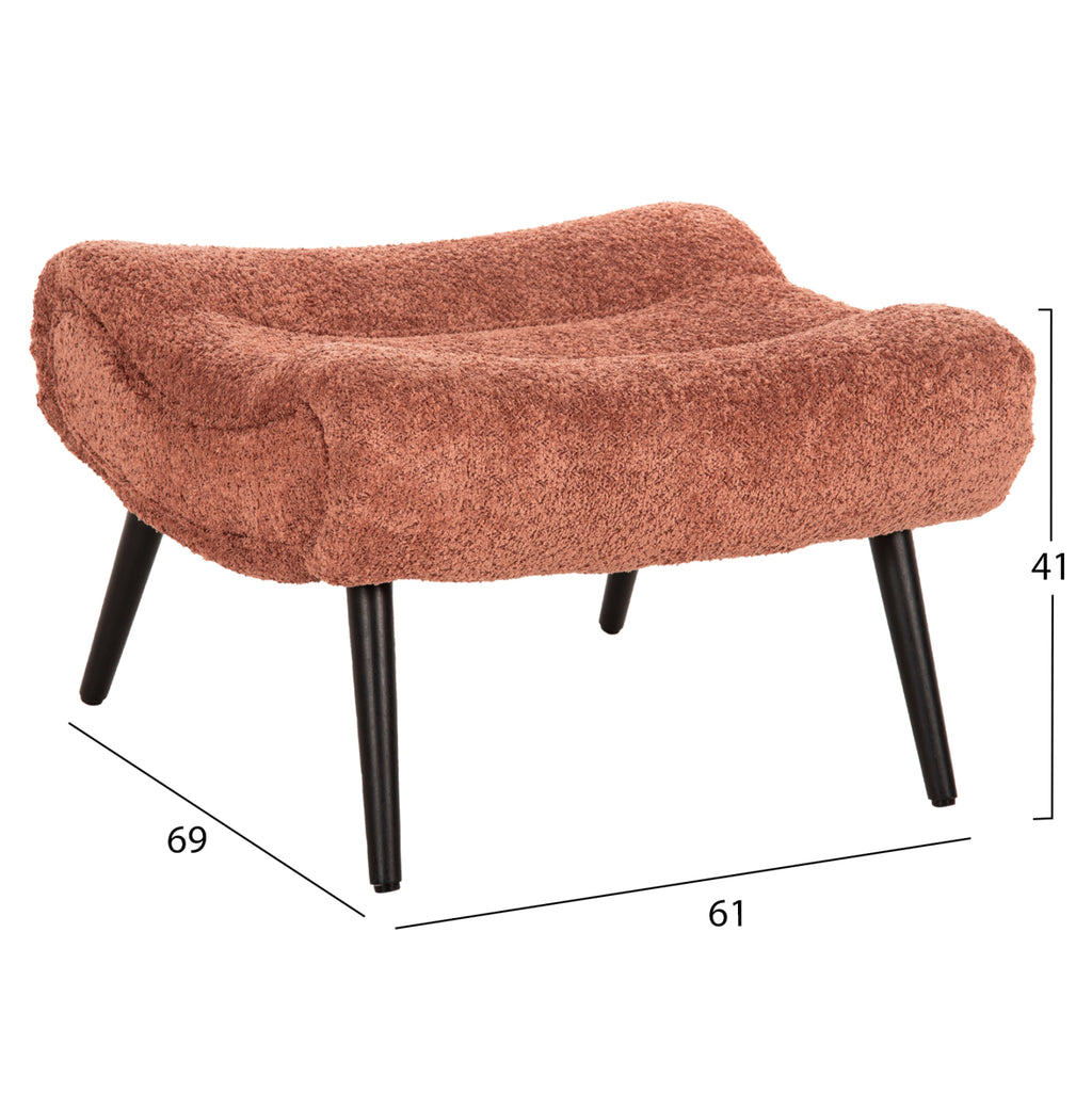 KEMBA табуретка за крака, тапицирана с РОЗОВА топла дамаска от букле и черни дървени крака. Докосване на елегантност, този пуф може да се съчетае с различни кресла като допълнение, за да завършите комплекта си, но може да стои и самостоятелно като независима част от вашия декор. РАЗМЕРИ: 68x58x40H см. МАТЕРИАЛ НА ИЗРАБОТКА: Табуретката е покрита с отлична материя BOUCHLE. Всяка тъкан, която има извиване на възел, се нарича букле. Изработено е от почти всички суровини (въпреки че обикновено е синтетично) със специални възли или силно усукани конци, така че да има къдрава повърхност. Не се мачка и може да бъде изчистена, меланжирана, карирана или туид. ПОДДРЪЖКА: Платът от букле можете да избършете с прахосмукачка, а при петна използвайте леко влажна кърпа. ** Цветопредаването на продукта може леко да се различава от неговото фотографско представяне на вашия екран. Продуктът се доставя разглобен във фабрична опаковка