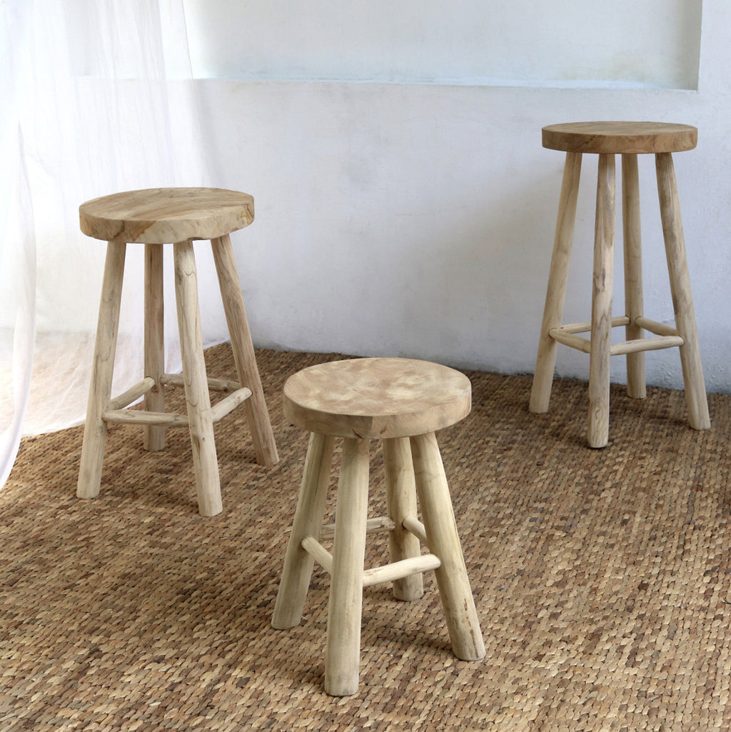 Кръглата табуретка MH9479, предимно за професионална употреба, е семпла табуретка, която има всичко, което бихте искали от подобна мебел. Той е качествен и елегантен на външен вид и със сигурност ще привлече окото, благодарение на качествената дървена конструкция. Той е със среден ръст и без гръб, като цялостната конструкция е лека и удобна и ще ви задоволи напълно благодарение на своята практичност. ТЕХНИЧЕСКИ ХАРАКТЕРИСТИКИ: Φ30x62Yсм. **Размерите може да варират поради ръчно изработена конструкция. Всички пукнатини в дървото се дължат на естественото състояние на дървото и не са дефект на продукта. МАТЕРИАЛИ НА ИЗРАБОТКА: Цялата табуретка е изработена от качествено масивно тиково дърво. Масивното дърво е вид дърво, чисто и неизбелено, традиционно използвано от дърводелците за направата на мебели. Масивната дървесина е най-скъпият избор по отношение на дървесината, но се откроява със своята вечна естетика. Ефектът, който предлага на притежателя си е наистина уникален. Тиковото дърво е най-популярният вид твърда дървесина. Той е жълт до тъмно кафяв на цвят, изключително тежък, с висока якост, устойчив на атмосферни влияния, устойчив на стружки и не се разлага. Често водите на дървото му са силни и прави. Използва се за много интериорни конструкции. ПОДДРЪЖКА: Фактът, че ТИК е част от твърдата дървесина, го прави много лесен за поддръжка. Всичко, от което се нуждае, е почистване от прах и при необходимост почистване с влажна кърпа. ПРЕДИМСТВА: Табуретката MH9479 ще задоволи и най-взискателния потребител. Неговата семпла и лека конструкция и като цяло качественото покритие ще оставят най-добри впечатления и всеки ще бъде възхитен от неговата практичност, докато лекотата на поддръжка е основна характеристика особено за професионални пространства.