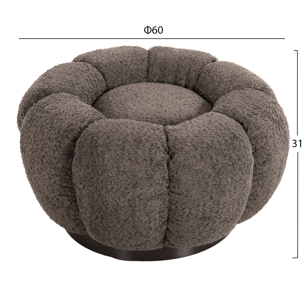 Табуретката KRIPP е модерно и стилно предложение, което ще остави отпечатък във всеки хол. Кръглата му форма, съчетана с топъл плат букле в СИВ цвят и много ниска черна основа, съставляват красива и удобна мебел, която може да се комбинира с различни други цветове в декорацията на хола. РАЗМЕРИ: Φ60x31H см. МАТЕРИАЛИ НА ИЗРАБОТКА: Подплатата е изработена изцяло от букле с отлично качество. Всяка тъкан, която има извиване на възел, се нарича букле. Изработено е от почти всички суровини (въпреки че обикновено е синтетично) със специални възли или силно усукани конци, така че да има къдрава повърхност. Не се мачка и може да бъде изчистена, меланжирана, карирана или туид. ПОДДРЪЖКА: Платът от букле можете да избършете с прахосмукачка, а при петна използвайте леко влажна кърпа. ПРЕДИМСТВА: •Здрава конструкция •Естетично съвършенство с подплата от букле •Лесна поддръжка ** Цветопредаването на продукта може леко да се различава от фотографското представяне на вашия екран.