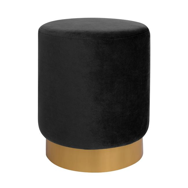 LEVY КГ8408.04 Табуретка с черно кадифе и златна основа. Нотка елегантност, съчетана с безброй цветови вариации и форми. Леко лъскавата материя с нейния неповторим вид и усещане не без причина е една от живите тенденции par excellence. Плюшеното покритие прави всичко различно! Размери: Φ35x43H см.