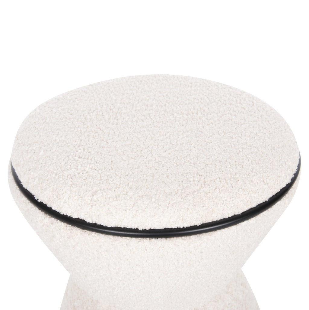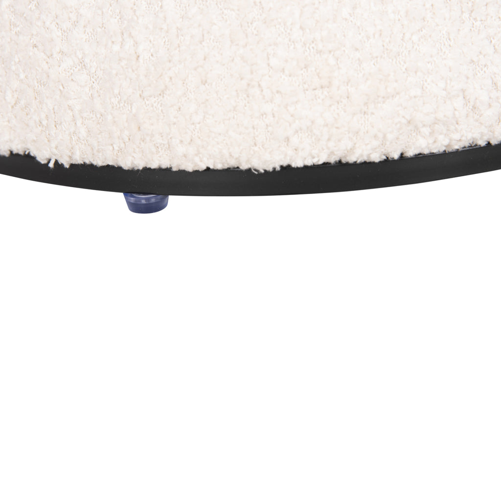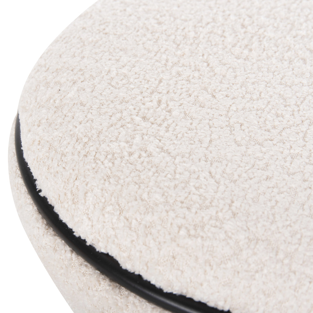 Цилиндрична табуретка LINNER, тапицирана с топла дамаска от букле CREAM и черен детайл ("пръстен") на седалката и основата.