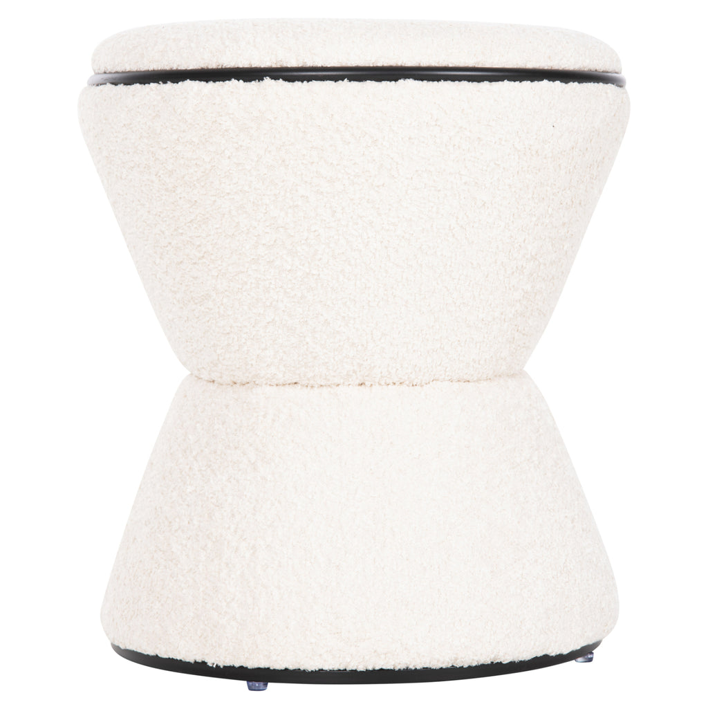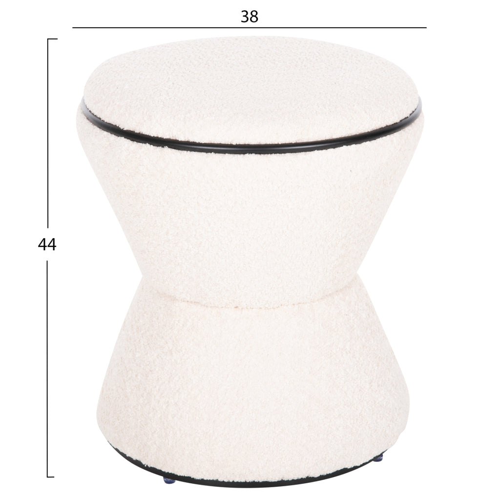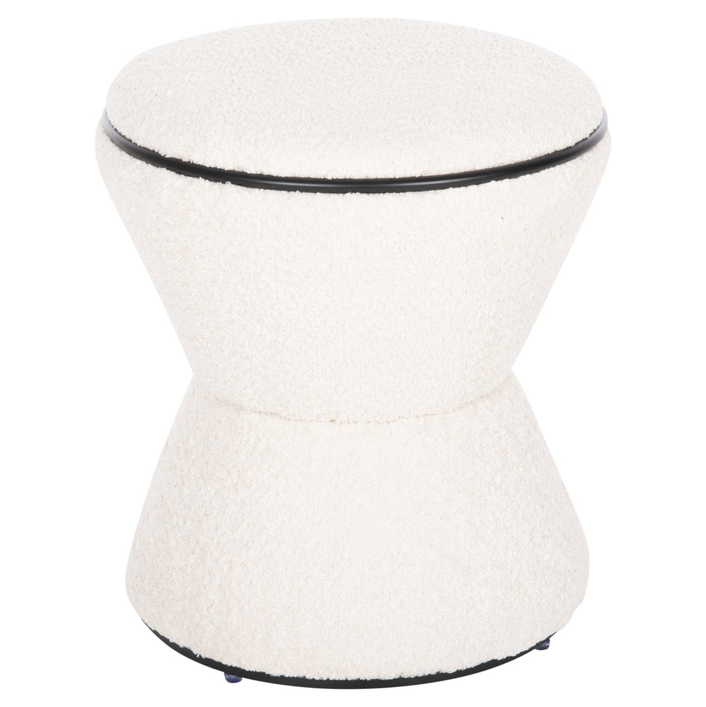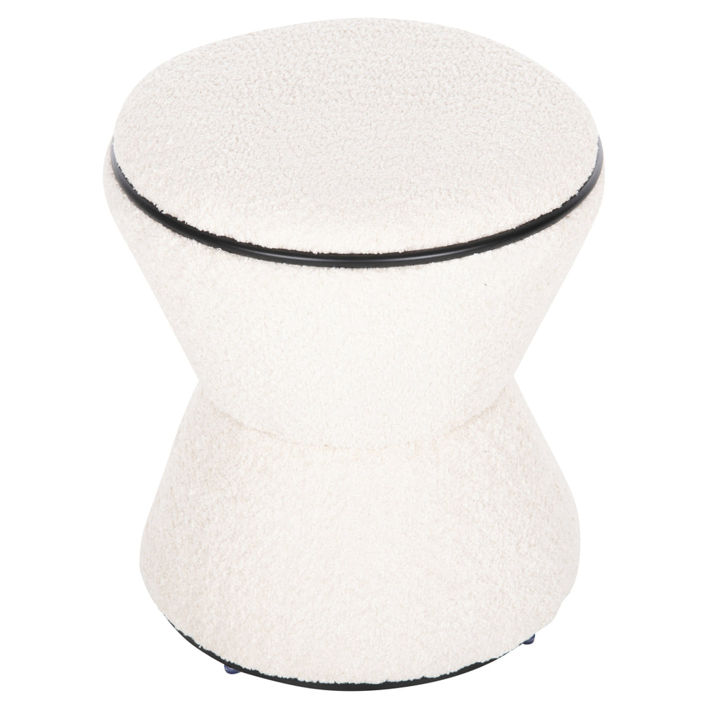 Цилиндрична табуретка LINNER, тапицирана с топла дамаска от букле CREAM и черен детайл ("пръстен") на седалката и основата.