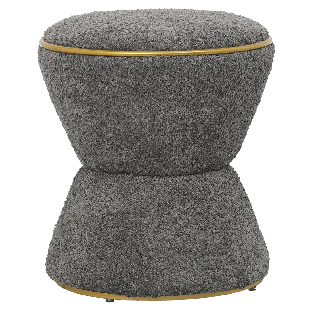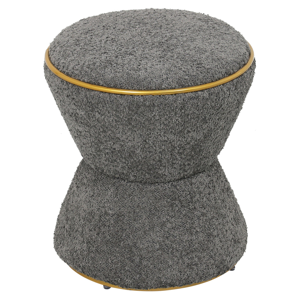Цилиндрична табуретка LINNER, тапицирана с топла дамаска от букле в СИВО и метален детайл ("пръстен") в ЗЛАТ на седалката и основата. Нотка елегантност, тази табуретка може да се комбинира с различни мебели като допълнение към вашия комплект, но може да стои и самостоятелно като независима част от вашия декор. РАЗМЕРИ: Φ38.5x43H см. МАТЕРИАЛ НА ИЗРАБОТКА: Табуретката е покрита с отлична дамаска BOUCHLE. Всяка тъкан, която има извиване на възел, се нарича букле. Изработено е от почти всички суровини (въпреки че обикновено е синтетично) със специални възли или силно усукани конци, така че да има къдрава повърхност. Не се мачка и може да бъде изчистена, меланжирана, карирана или туид. ПОДДРЪЖКА: Платът от букле можете да избършете с прахосмукачка, а при петна използвайте леко влажна кърпа. ** Цветопредаването на продукта може леко да се различава от неговото фотографско представяне на вашия екран.