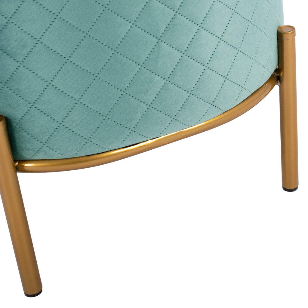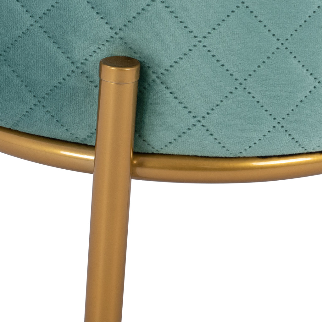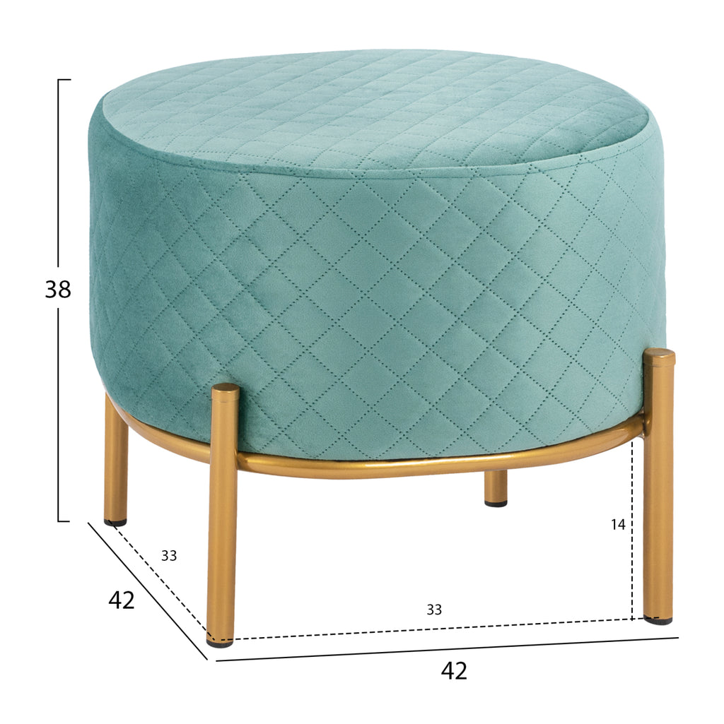 SINTA табуретка от кадифе в нюанс шам фъстък, с метална основа в цвят злато. Нотка елегантност, съчетана с безброй цветови вариации и форми. Кадифето винаги се счита за една от най-благородните материи, така че придава много специален чар. Леко лъскавата материя с нейния неповторим вид и усещане не без причина е една от живите тенденции par excellence. Плюшеното покритие прави всичко различно! Размери: 42x42x38H см. Разстояние между краката: 33х33 см. Височина на крака: 14 см.