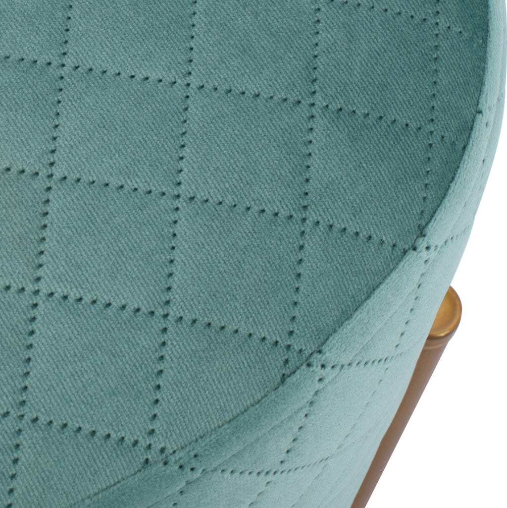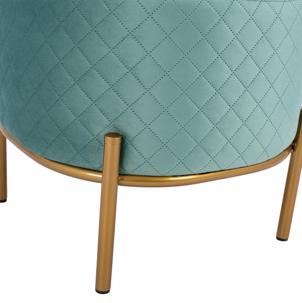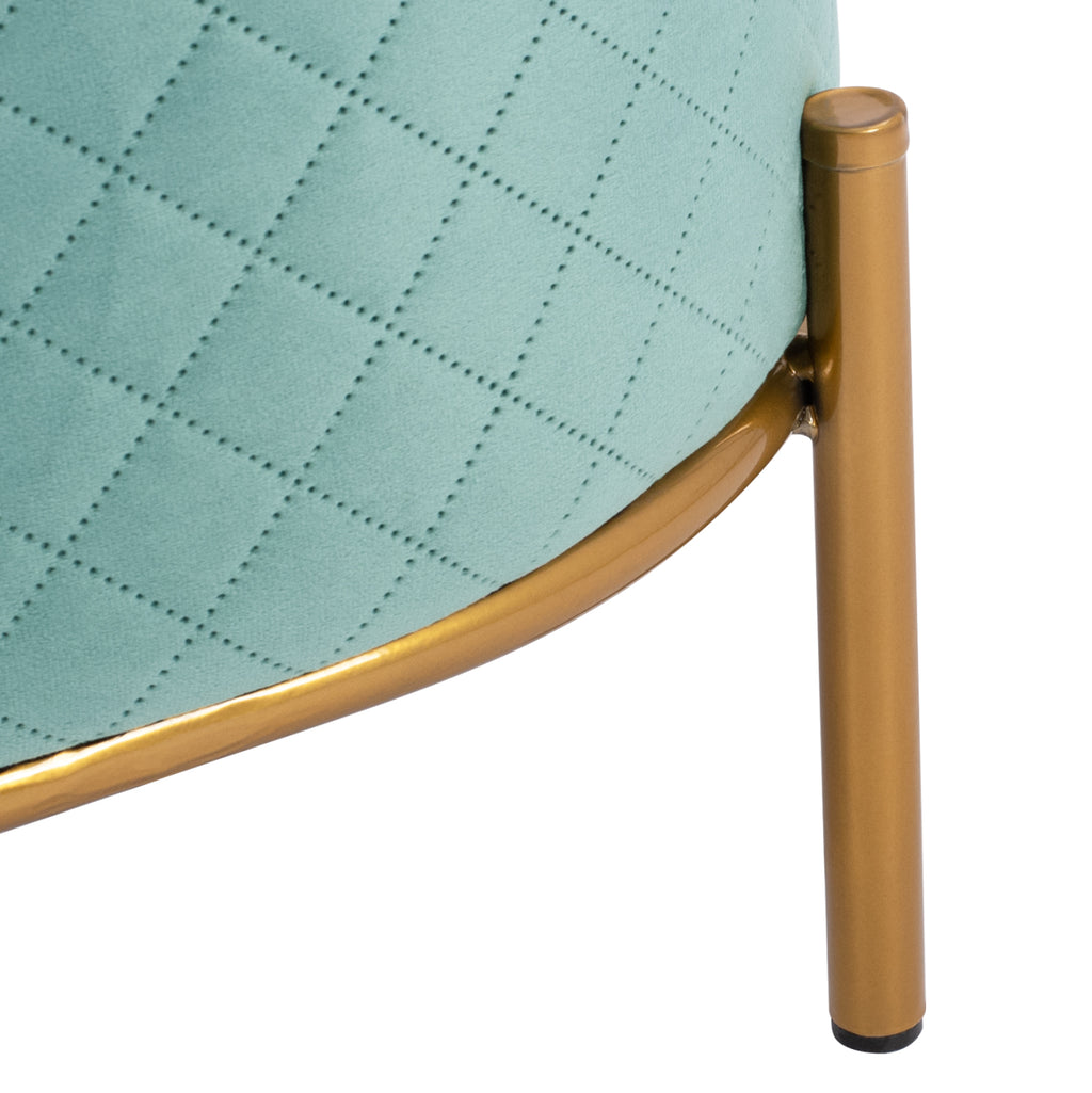 SINTA табуретка от кадифе в нюанс шам фъстък, с метална основа в цвят злато. Нотка елегантност, съчетана с безброй цветови вариации и форми. Кадифето винаги се счита за една от най-благородните материи, така че придава много специален чар. Леко лъскавата материя с нейния неповторим вид и усещане не без причина е една от живите тенденции par excellence. Плюшеното покритие прави всичко различно! Размери: 42x42x38H см. Разстояние между краката: 33х33 см. Височина на крака: 14 см.