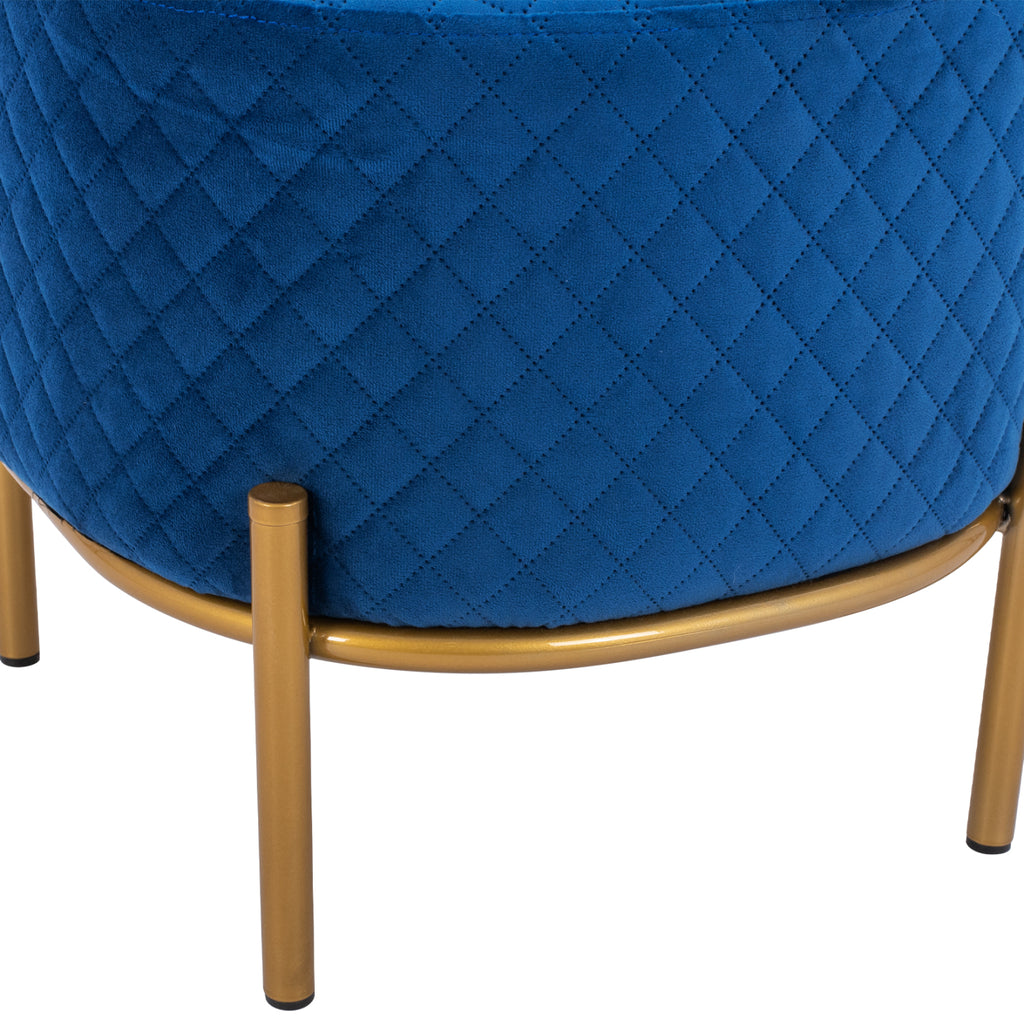 SINTA табуретка от кадифе в син нюанс, с метална основа в цвят злато. Нотка елегантност, съчетана с безброй цветови вариации и форми. Кадифето винаги се счита за една от най-благородните материи, така че придава много специален чар. Леко лъскавата материя с нейния неповторим вид и усещане не без причина е една от живите тенденции par excellence. Плюшеното покритие прави всичко различно! Размери: 42x42x38H см. Разстояние между краката: 33х33 см. Височина на крака: 14 см.