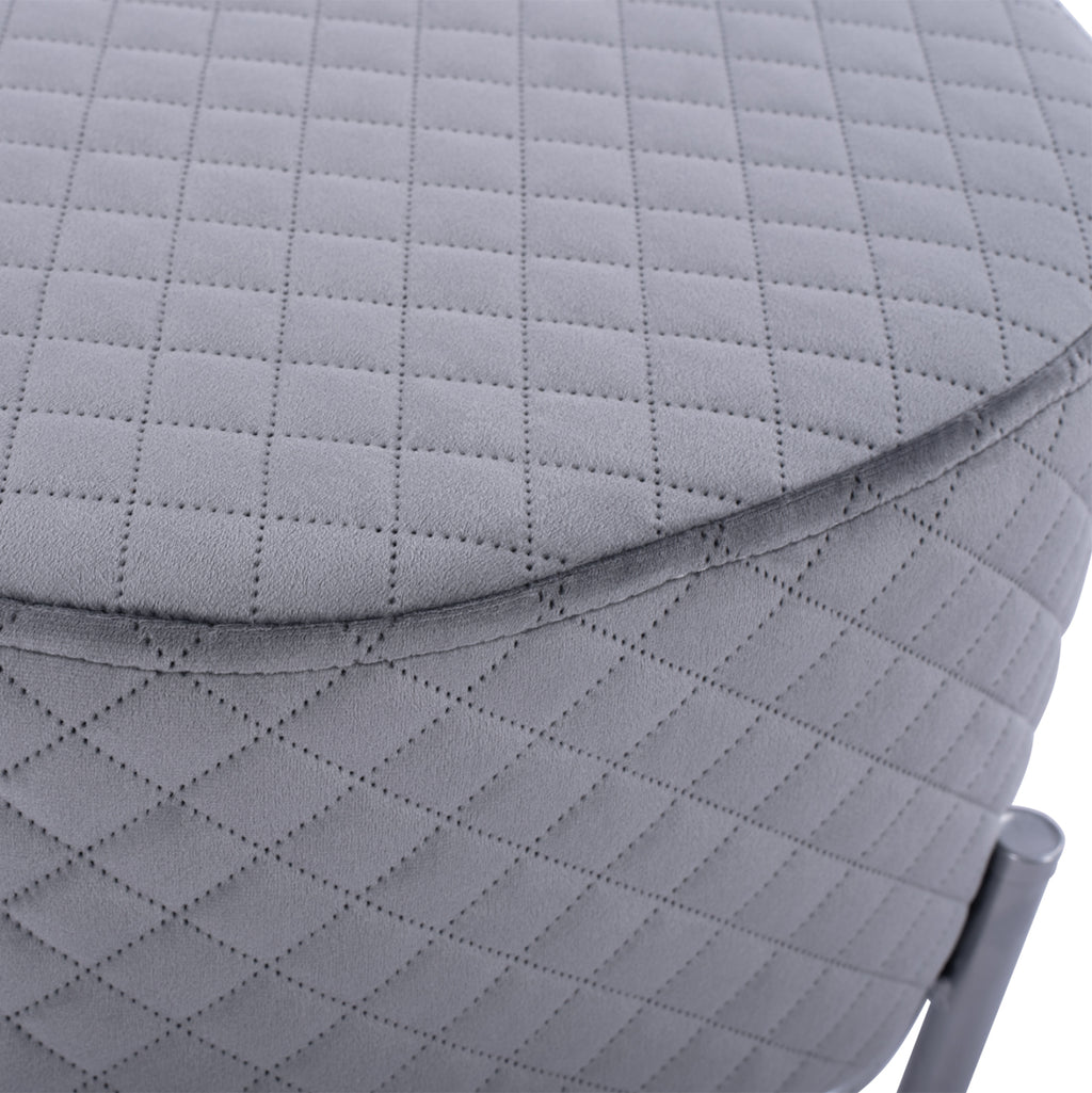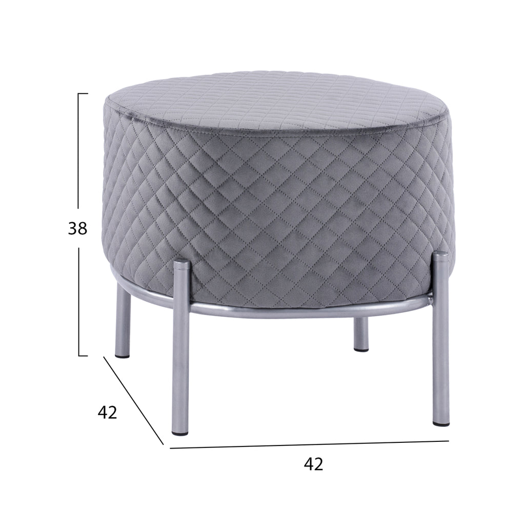 SINTA табуретка от кадифе в сив нюанс, с метална основа в сребрист цвят. Нотка елегантност, съчетана с безброй цветови вариации и форми. Кадифето винаги се счита за една от най-благородните материи, така че придава много специален чар. Леко лъскавата материя с нейния неповторим вид и усещане не без причина е една от живите тенденции par excellence. Плюшеното покритие прави всичко различно! Размери: 42х42х38см.