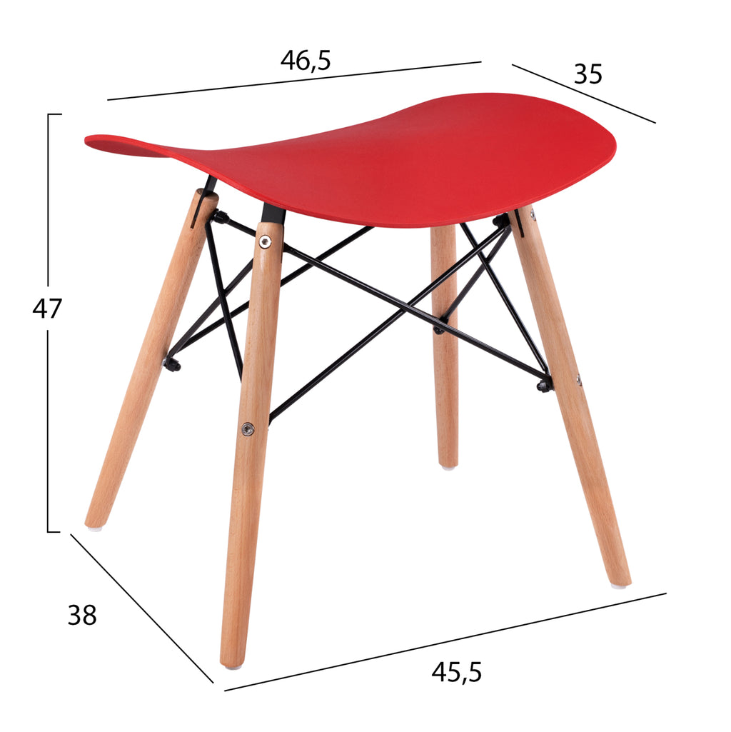 TONIA е практична ниска табуретка със седалка от полипропилен в ЧЕРВЕН цвят и крака от бук в естествен цвят. Полезно допълнение към всяко пространство на страхотна цена! РАЗМЕРИ: 46.5x35x47Y см. Височина на седалката: 42 см. Размери на крака: 45.5х38 см. МАТЕРИАЛИ НА КОНСТРУКЦИЯТА: Седалката е изработена от полипропилен. Полипропиленът е особено устойчив на тегло и вода, като същевременно има голяма устойчивост на температури до 125 градуса по Целзий. Освен това неговата издръжливост не се ограничава до тегло, вода и температура, но е необичайно устойчив на много химически разтворители, киселини и основи. ПОДДРЪЖКА: Почиства се лесно с влажна кърпа. *Продуктът се доставя във фабрична опаковка, несглобен, с инструкции за сглобяване. ** Цветопредаването на продукта може леко да се различава от неговото фотографско представяне на вашия екран.