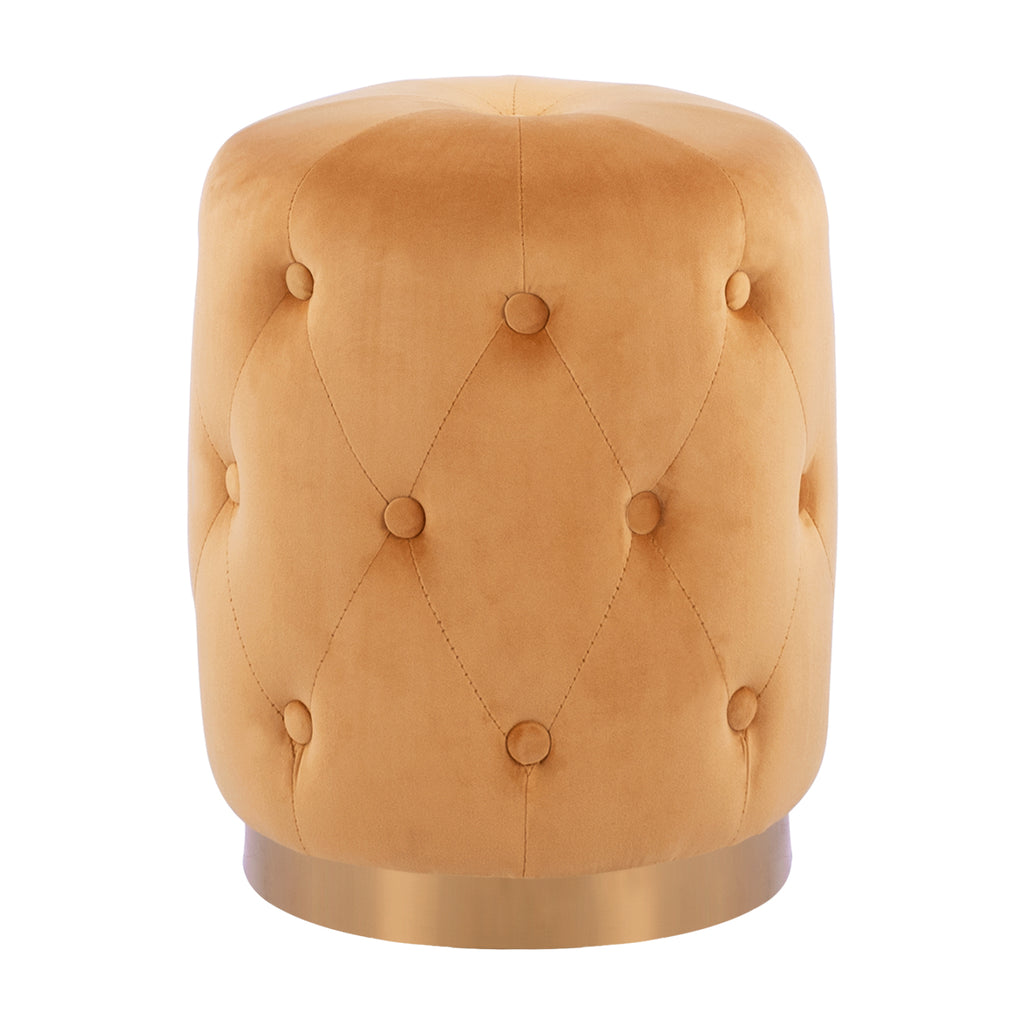TORRIE КГ8405.09 Табуретка от кадифе в златист нюанс със златиста основа. Нотка елегантност, съчетана с безброй цветови вариации и форми. Кадифето винаги се счита за една от най-благородните материи, така че придава много специален чар. Леко лъскавата материя с нейния неповторим вид и усещане не без причина е една от живите тенденции par excellence. Плюшеното покритие прави всичко различно! Размери: Φ36x45H см.