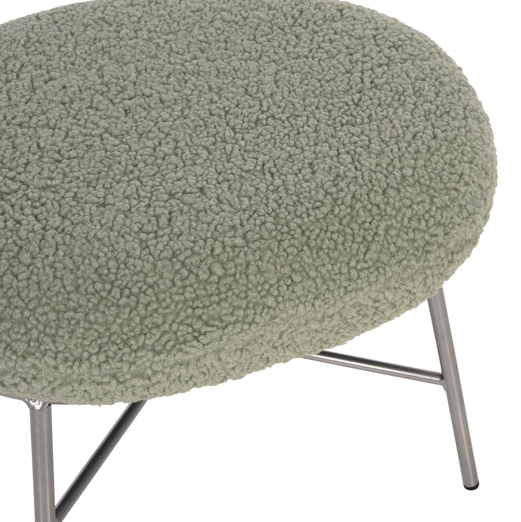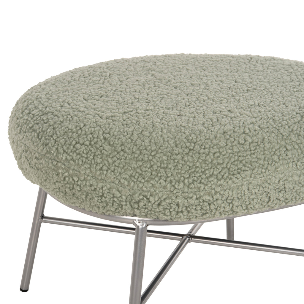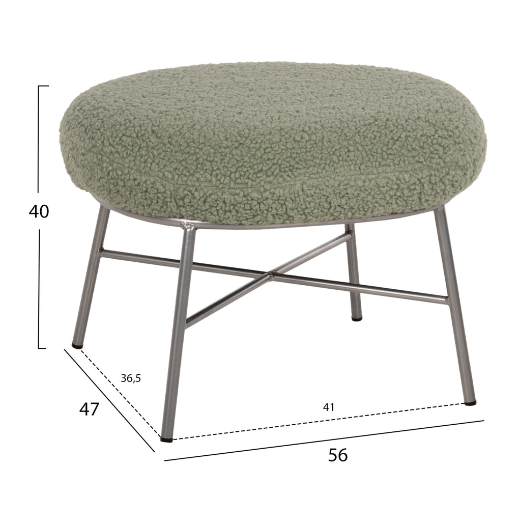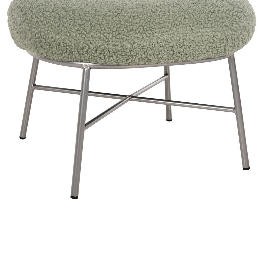 Табуретка/табуретка TRUDI е модерно и стилно предложение, което ще остави отпечатък във всеки хол. Неговата овална форма със сребриста метална основа с крака, свързани с кръстосано подреждане, съчетани с топъл плат букле в мек цвят ФЪСТЪК, съставляват красива и практична мебел, която може да се комбинира по различни начини в декорацията на всекидневната, но най-вече с красиво кресло със същата естетика като табуретка. РАЗМЕРИ: 56x47x40H см. Разстояние между краката: 41х36,5 см. МАТЕРИАЛИ НА КОНСТРУКЦИЯТА: Основата е метална, предлагаща здравина, както и устойчивост във времето. Подплатата е изцяло изработена от плат букле с отлично качество. Всяка тъкан, която има извиване на възел, се нарича букле. Изработено е от почти всички суровини (въпреки че обикновено е синтетично) със специални възли или силно усукани конци, така че да има къдрава повърхност. Не се мачка и може да бъде изчистена, меланжирана, карирана или туид. ПОДДРЪЖКА: Платът от букле можете да избършете с прахосмукачка, а при петна използвайте леко влажна кърпа. ПРЕДИМСТВА: •Здрава конструкция •Естетично превъзходство с материята букле на хастара •Модерен дизайн •Лесна поддръжка