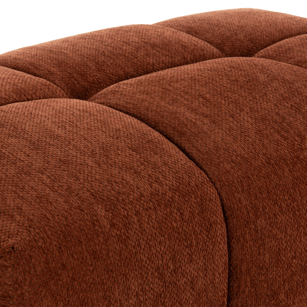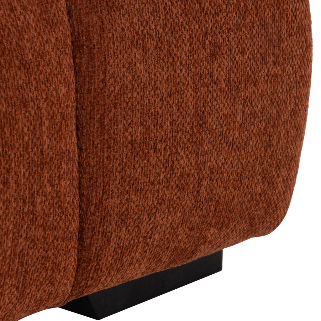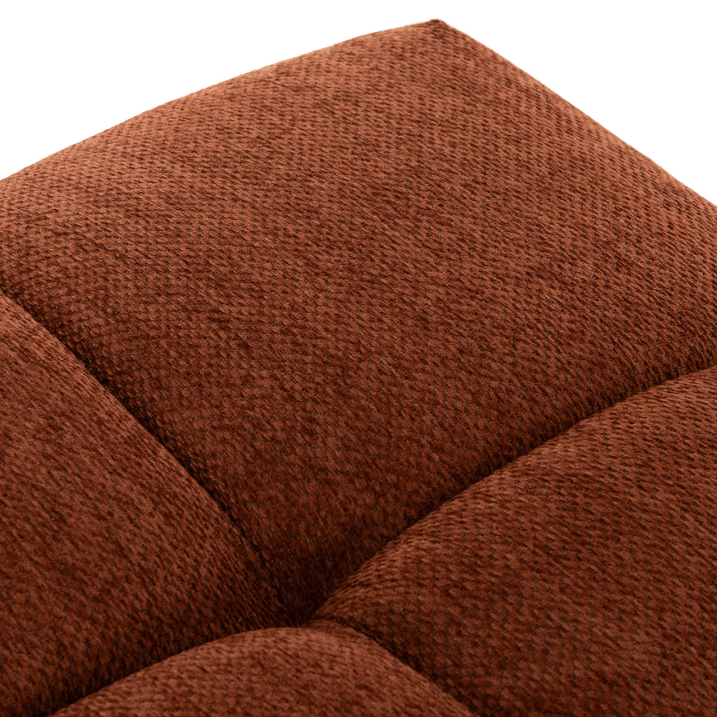 • Тапицирана с качествен релефен плат в тухленочервен цвят, който добавя топлина и характер към пространството.