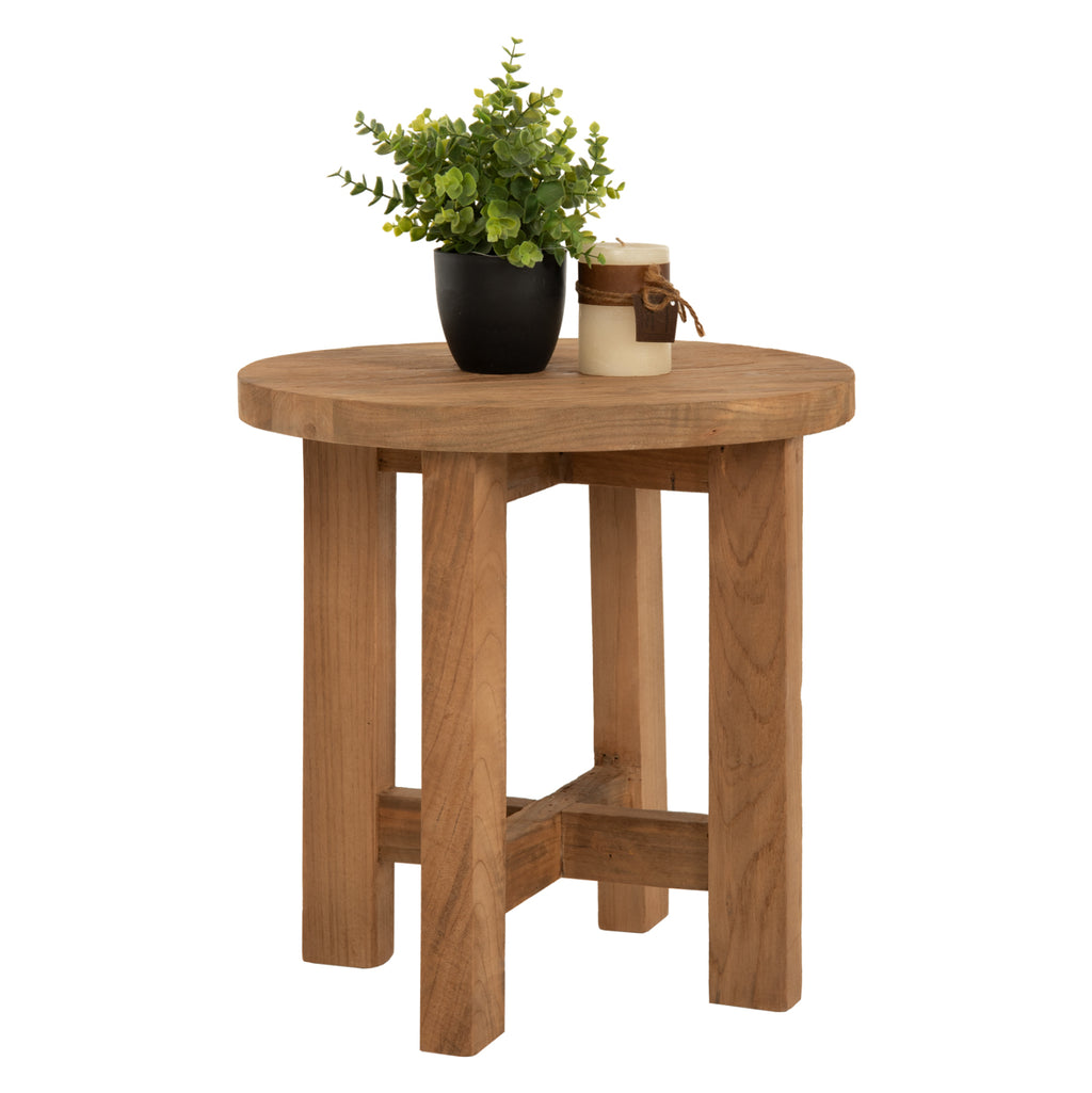 Табуретка КГ7943 е къса кръгла дървена табуретка в естествен дървесен цвят, с четири крака, съединени с кръстати бодове. Тя е типичен пример за рустикални мебели. Този стил се характеризира с естествени текстури и добавя топъл и тежък чар към всяка стая. Освен това е доста универсална и се съчетава чудесно с много други стилове, като например традиционна или индустриална декорация. В крайна сметка, усещането за природа има успокояващ ефект върху повечето хора. РАЗМЕРИ: Размери: 45.5x40x45 см. Разстояние между краката: 38x38 см. / 25x25 Дебелина на повърхността: 3 см. Дебелина на краката: 6x4 см. СТРОИТЕЛНИ МАТЕРИАЛИ: Конструкцията е изработена от масивна рециклирана дървесина ТИК. Когато говорим за масивна дървесина, имаме предвид дървесината, която е направена изцяло от ствола на дървото. Масивната дървесина е най-скъпият избор от дървесни видове, но се откроява с вечната си естетика. ТИКЪТ е най-популярният вид твърда дървесина. Той е от жълто до тъмнокафяв цвят, изключително тежък, много издръжлив, устойчив на атмосферни влияния, устойчив на деформация и не се разпада. Често шарките на дървесината му са интензивни и прави. Използва се за различни интериорни конструкции. ПОДДРЪЖКА: Фактът, че ТИКЪТ е част от твърдите дървесини, го прави много лесен за поддръжка. Всичко, което е необходимо, е избърсване от прах и, когато е необходимо, почистване с влажна кърпа. ПРЕДИМСТВА: Тези, които са фенове на рустик стила в мебелите и декорацията, ще бъдат във възторг от този стол. Той е идеален за дома, но също така и за хотели, Airbnb, трапезарии като декоративен елемент и др. И винаги на най-ниската цена на пазара.