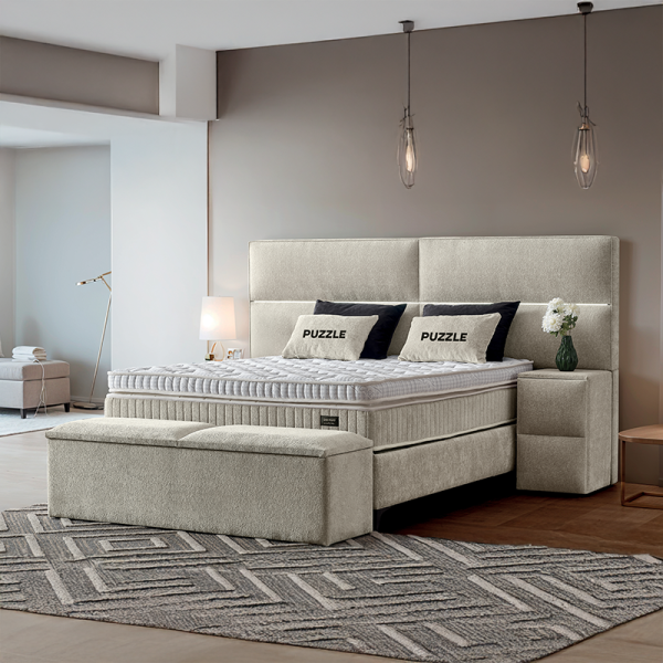 Тапицирана пейка с ракла за спалня PUZZLE 160x200 - крем 01
