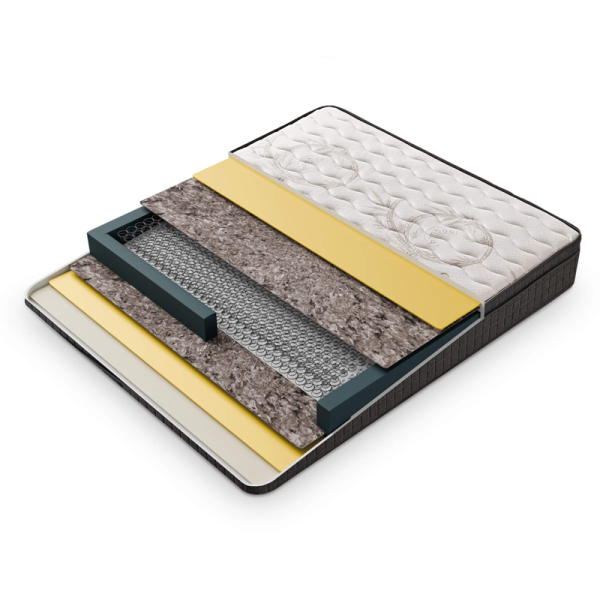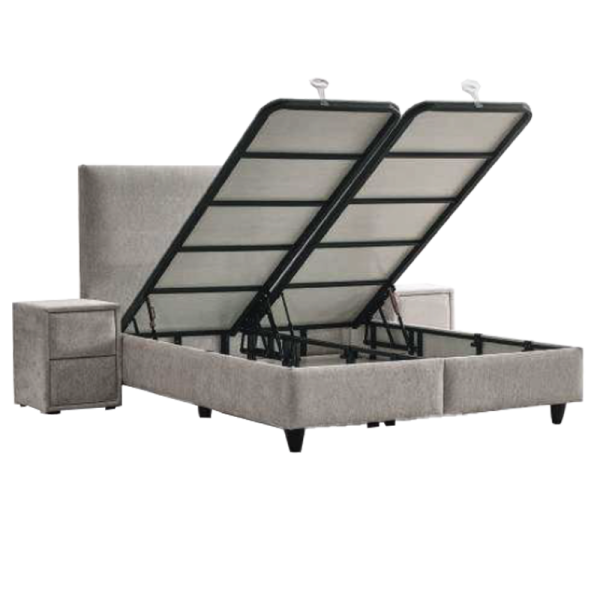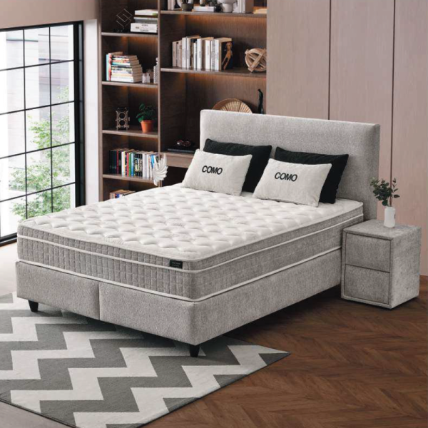 Тапицирана спалня с матрак COMO 160 x 200 носи усещане за изчистен лукс и комфорт, съчетавайки модерен минимализъм с функционалност. Таблата с права геометрия и деликатна тапицерия придава елегантност и подчертава съвременния характер на модела. Матракът е двулицев, с покет пружини, еластична пяна и пухена вложка, което осигурява балансирано усещане между мекота и поддръжка. Структурата е средно твърда и с ортопедични свойства, подходяща за ежедневна употреба и пълноценен сън. Подматрачната рамка е стабилна и включва функционална ракла за съхранение – дискретно и практично решение за организация в спалнята.