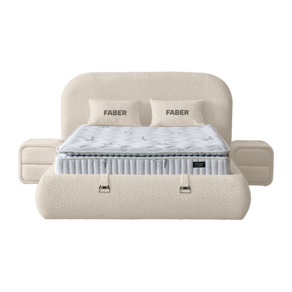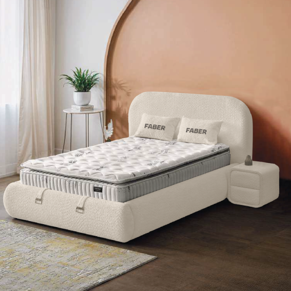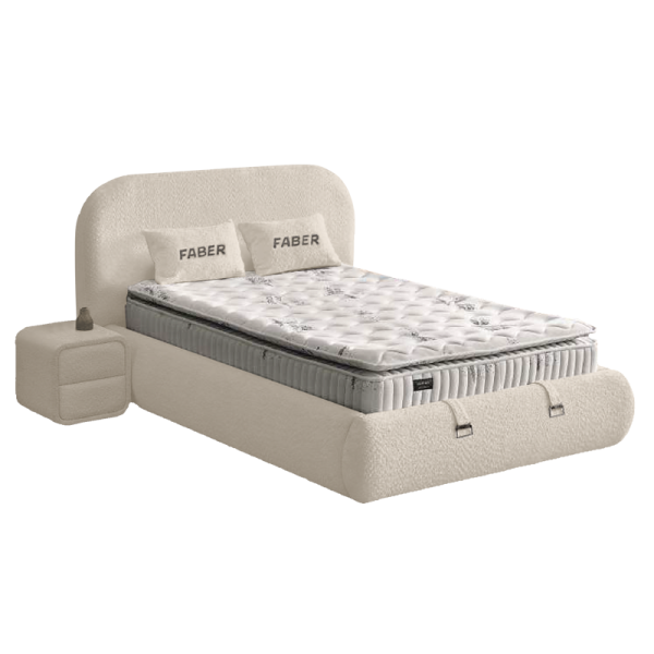 Тапицираната спалня с матрак FABER съчетава модерна естетика с ергономичен комфорт, предлагайки изживяване при сън, което няма аналог. Изработена от висококачествени материали, тя гарантира максимално удобство и дълготрайност, а стилният ѝ дизайн придава изисканост и уют на всяка спалня. Включеният матрак е умерено мек, осигуряващ балансирана опора и комфорт през цялата нощ. Моделът разполага с подсилена подматрачна рамка с амортисьори и ракла за съхранение – идеално решение за спално бельо и багаж.