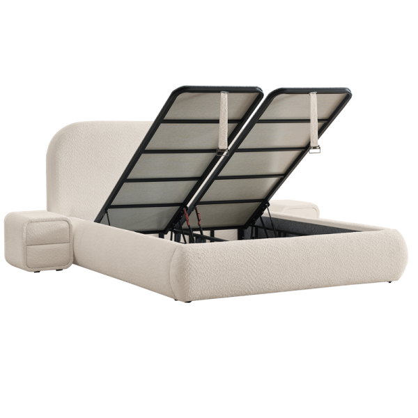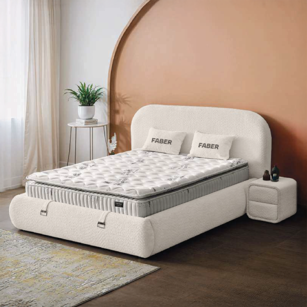 Тапицираната спалня с матрак FABER съчетава модерна естетика с ергономичен комфорт, предлагайки изживяване при сън, което няма аналог. Изработена от висококачествени материали, тя гарантира максимално удобство и дълготрайност, а стилният ѝ дизайн придава изисканост и уют на всяка спалня. Включеният матрак е умерено мек, осигуряващ балансирана опора и комфорт през цялата нощ. Моделът разполага с подсилена подматрачна рамка с амортисьори и ракла за съхранение – идеално решение за спално бельо и багаж.