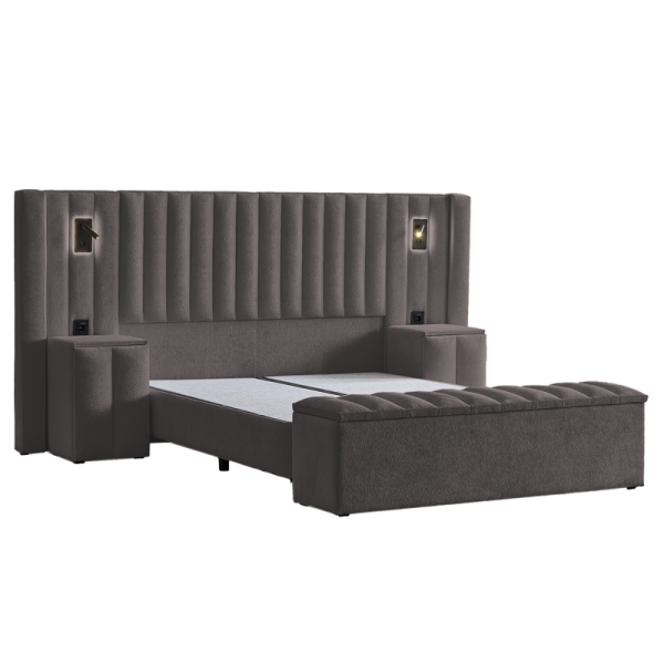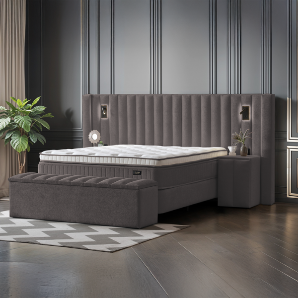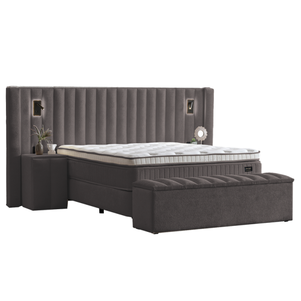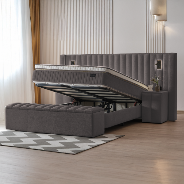 Потопете се в лукс с тапицирана спалня FLORIDA (180х200) – перфектният акцент за Вашата модерна спалня. Тя съчетава изискан дизайн с максимална функционалност. Леглото е облечено във висококачествена дамаска, която подчертава елегантността на тапицираната табла. За Вашия безупречен комфорт е включен и луксозен матрак. Практичността е гарантирана от подматрачната рамка с амортисьорен механизъм за повдигане, която разкрива просторна ракла за съхранение. FLORIDA превръща спалнята Ви в съвременно убежище за релакс. Шкафчетата и пейката са допълнителни аксесоари, които завършват изискания облик на серията.