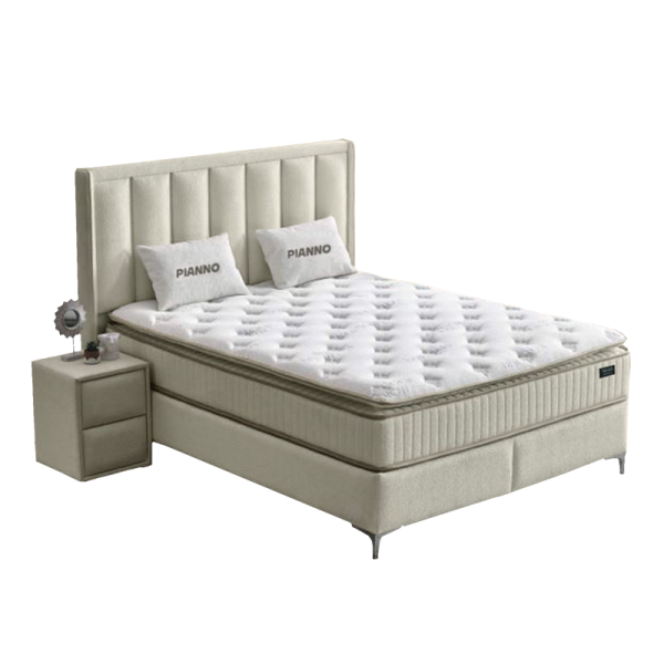 Тапицирана спалня с матрак PIANO 160 x 200 съчетава модерен дизайн и изключителен комфорт, създавайки идеалното решение за сън. Нейната ергономична опора и премиум материали помагат на тялото Ви да се отпусне през цялата нощ. Подобрете качеството на съня си и естетиката на спалнята с неподвластната на времето красота на модел PIANO.